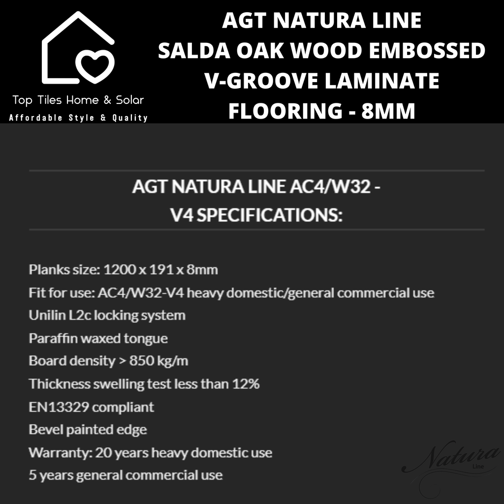 AGT Natura Line Salda Oak Wood Embossed V-Groove Laminate Flooring - 8mm