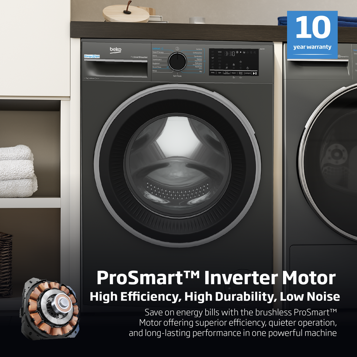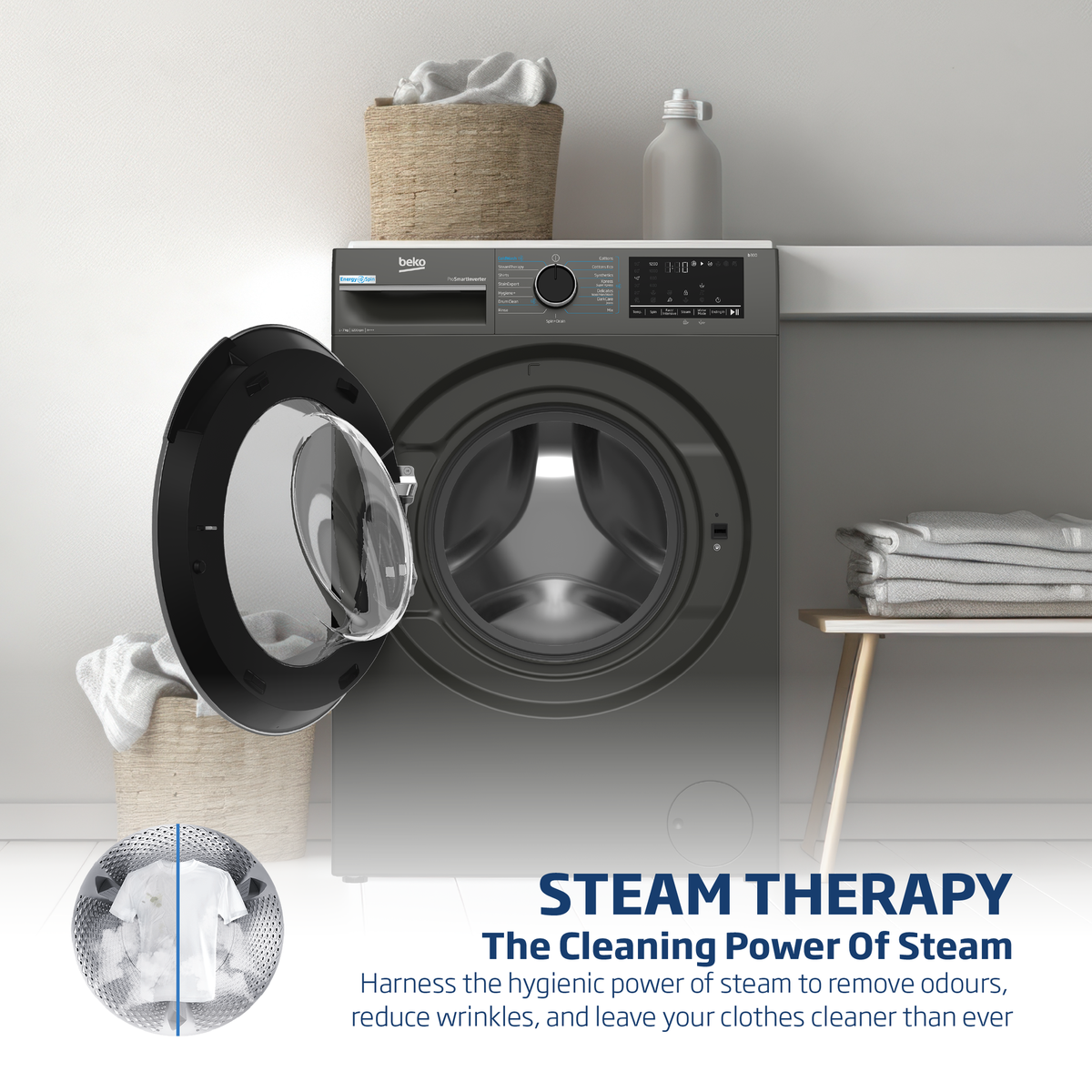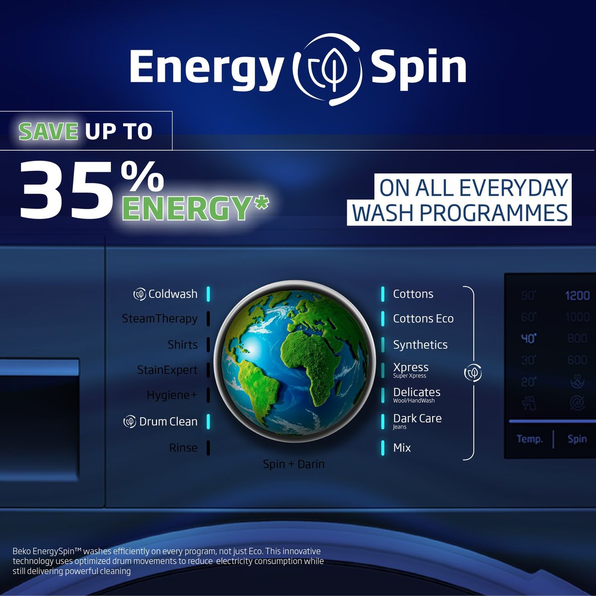 Don't you want to use less energy when doing your laundry, not just in eco-friendly programs but in all programs*? Beko's EnergySpin technology offers just that.