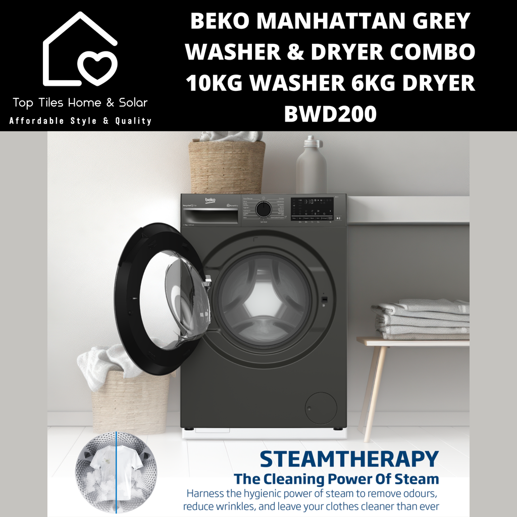 Beko Manhattan Grey Washer & Dryer Combo - 10kg Washer 6kg Dryer BWD200
