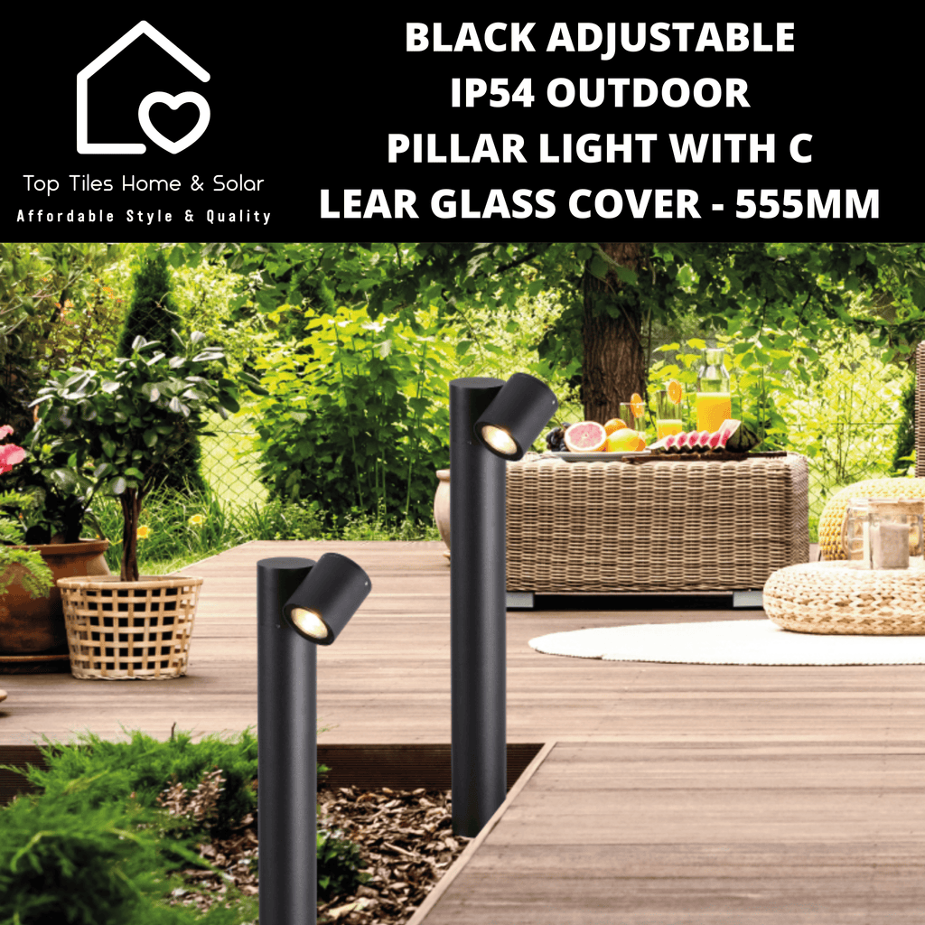 Black Adjustable IP54 Outdoor Pillar Light with Clear Glass Cover - 555mm