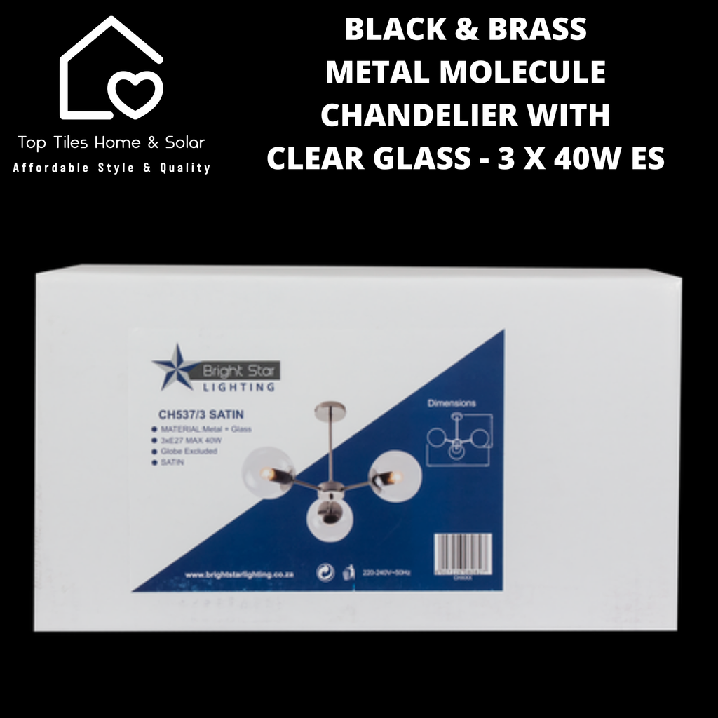 Black & Brass Metal Molecule Chandelier With Clear Glass - 3 x 40W ES