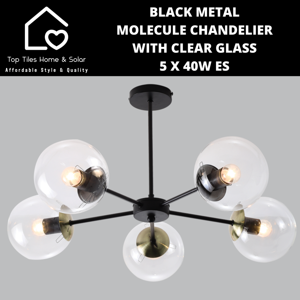 Black Metal Molecule Chandelier With Clear Glass - 5 x 40W ES