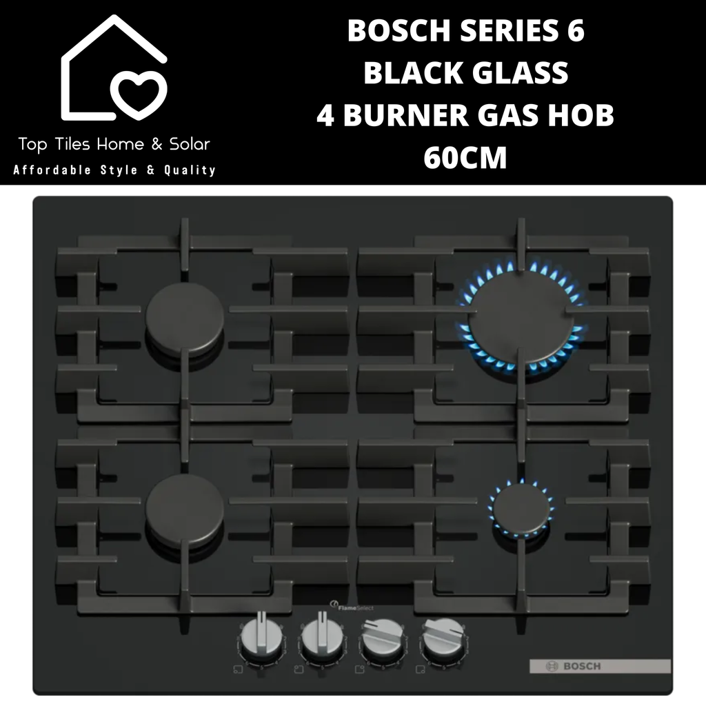 Bosch Series 6 - Black Glass 4 Burner Gas Hob - 60cm