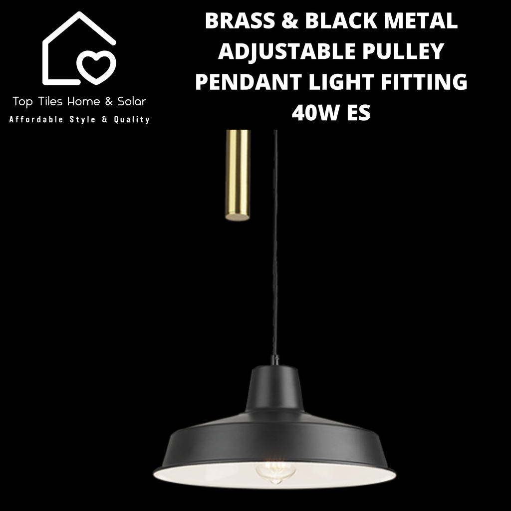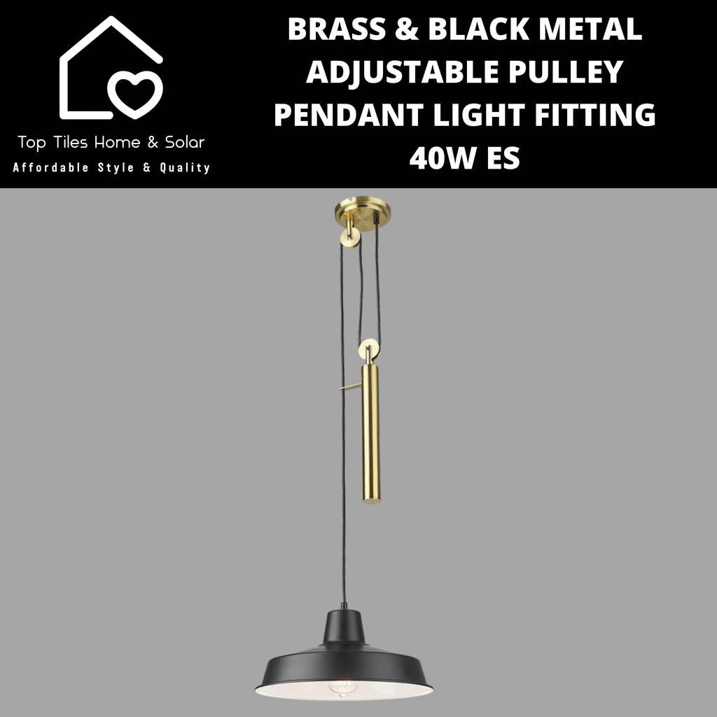 Brass & Black Metal Adjustable Pulley Pendant Light Fitting - 40W ES