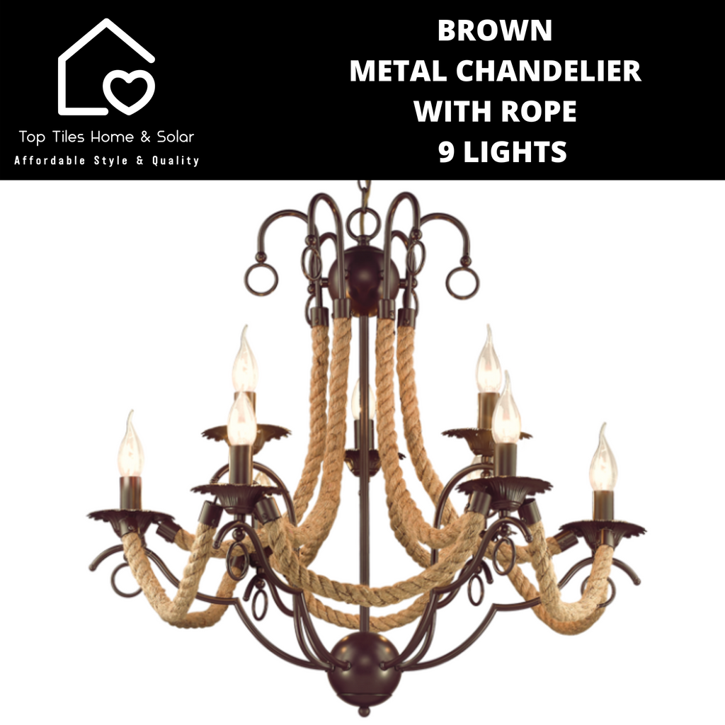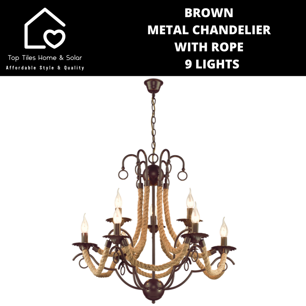 Brown Metal Chandelier With Rope - 9 Lights