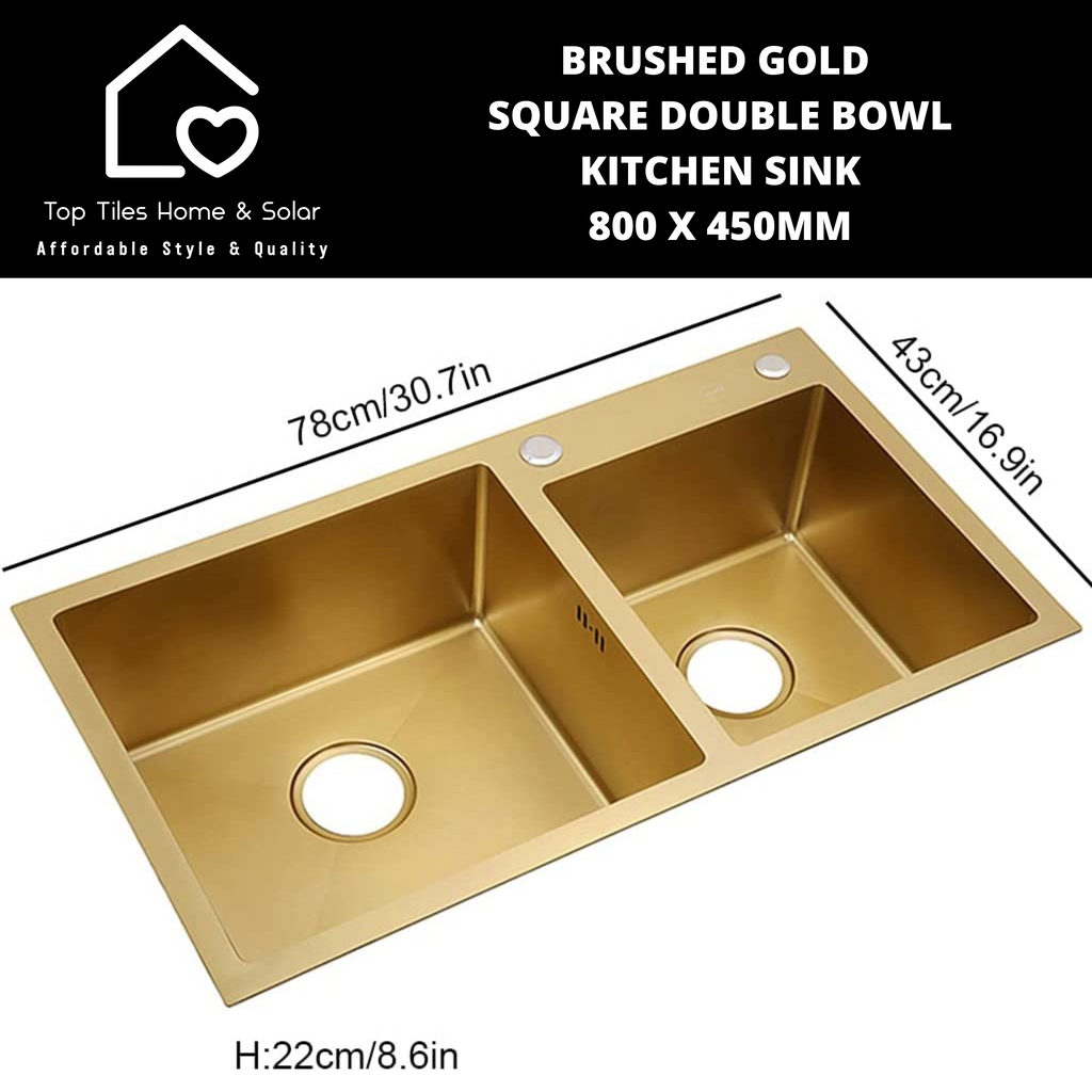 Brushed Gold Square Double Bowl Kitchen Sink - 800 x 450mm