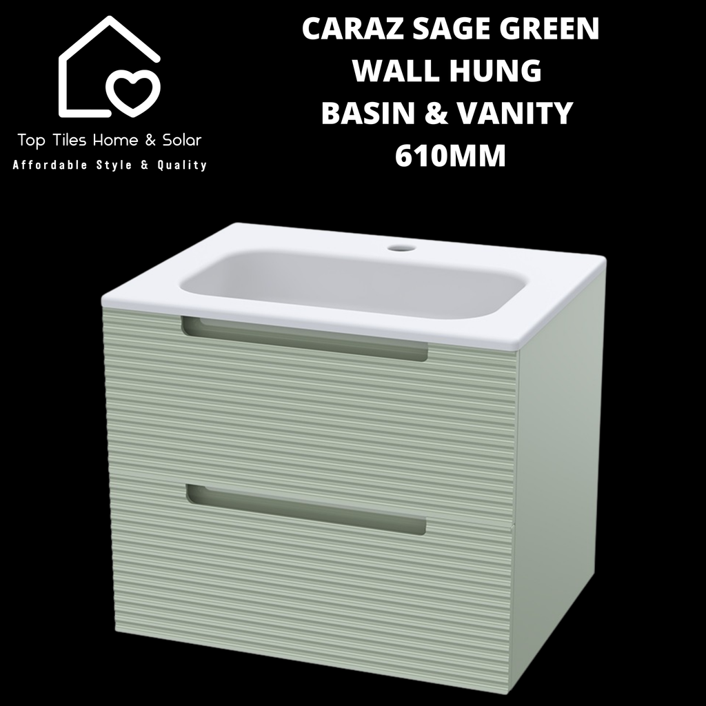 Caraz Sage Green Wall Hung Basin & 2 Drawer Vanity - 610mm