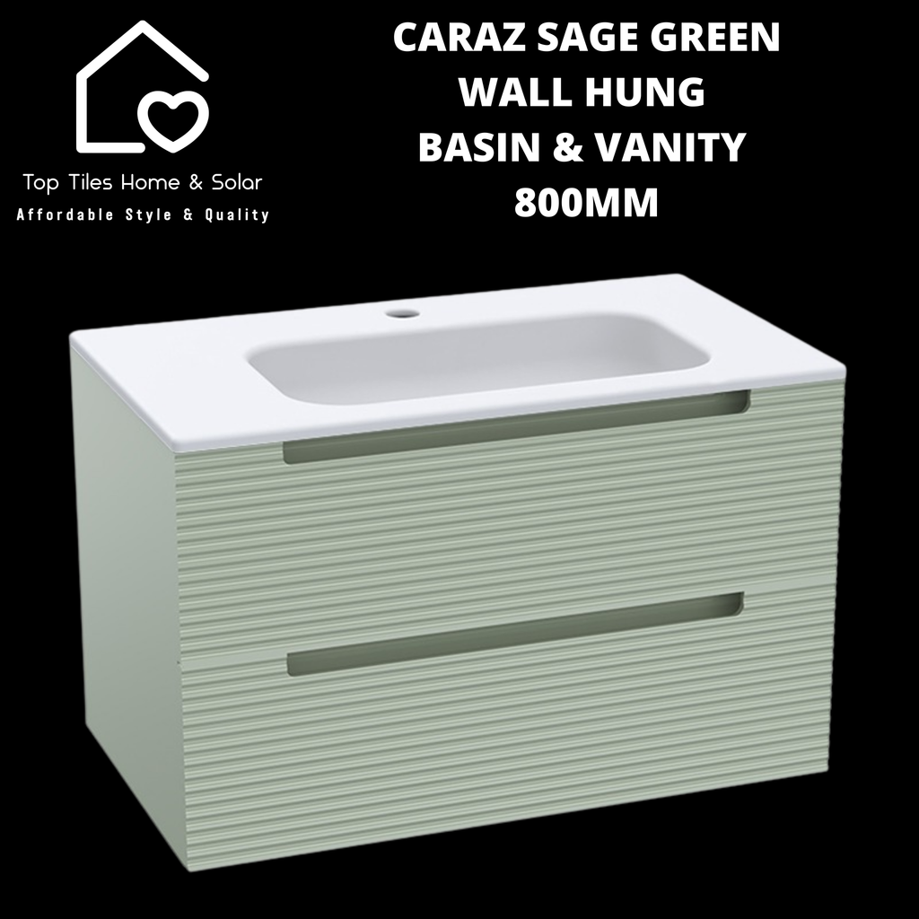 Caraz Sage Green Wall Hung Basin & 2 Drawer Vanity - 800mm