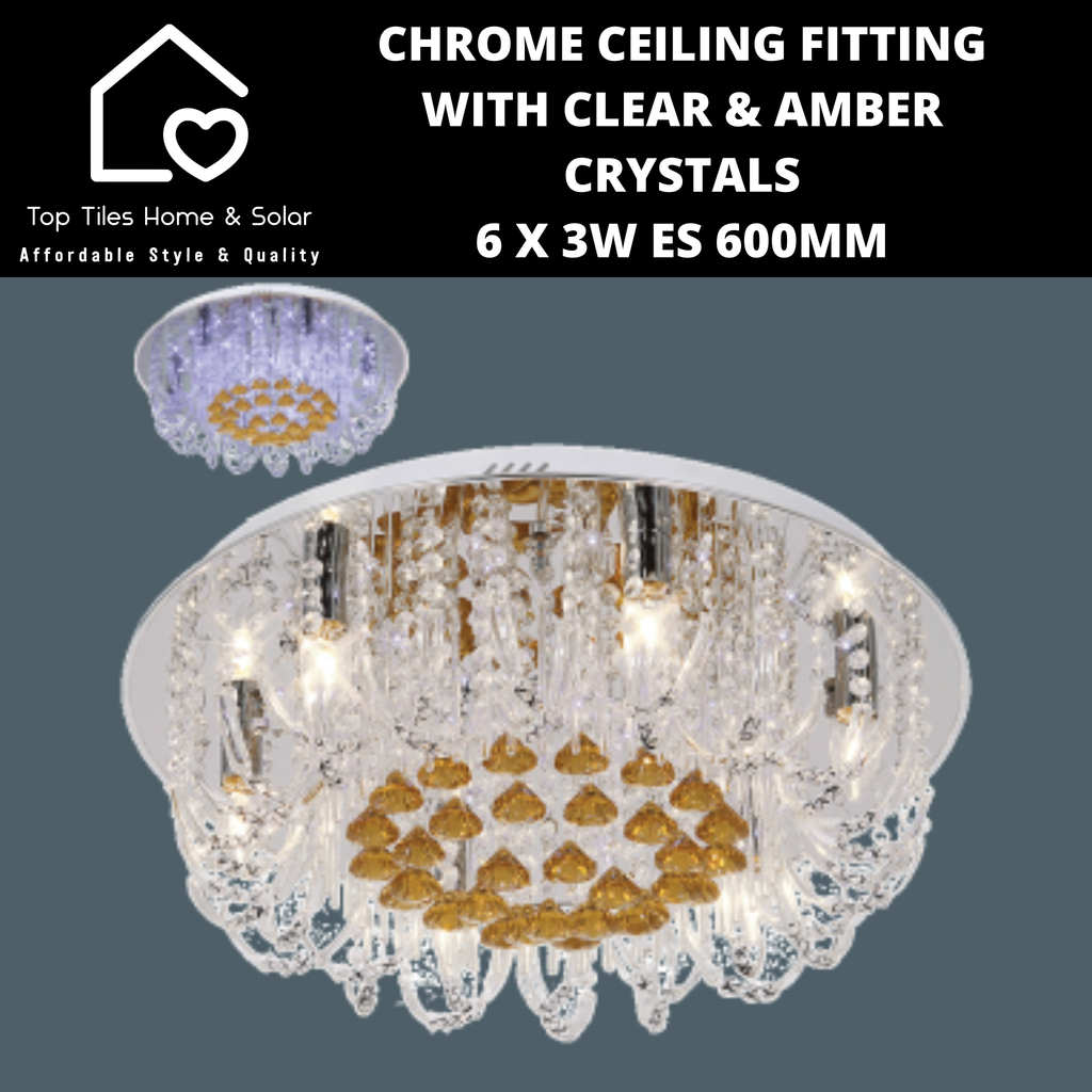 Chrome Ceiling Fitting with Clear & Amber Crystals - 6 x 3W ES 600mm