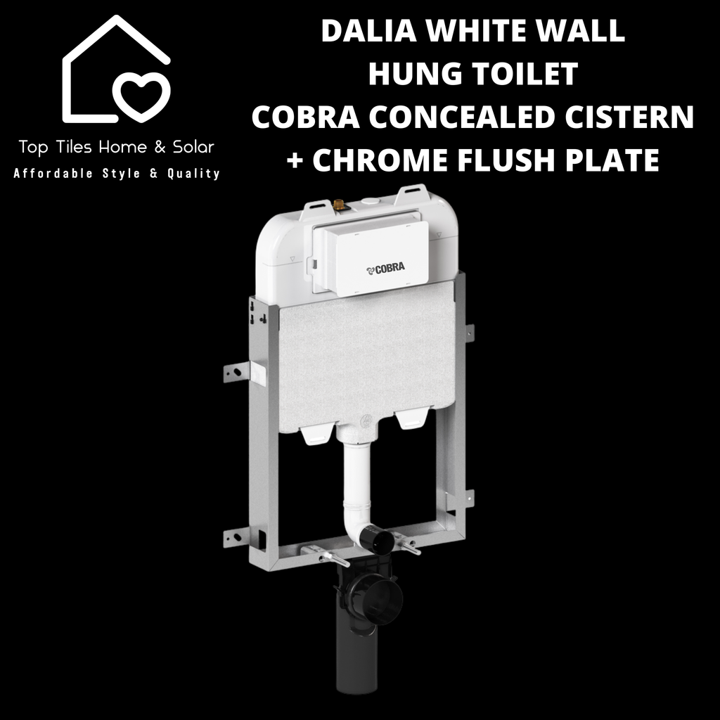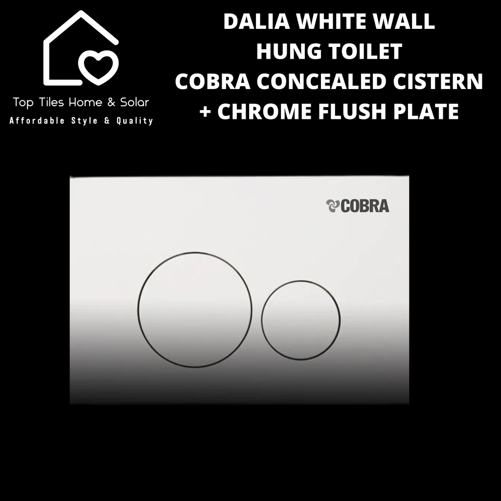 Dalia White Wall Hung Toilet With Cobra Concealed Cistern & Chrome Flush Plate