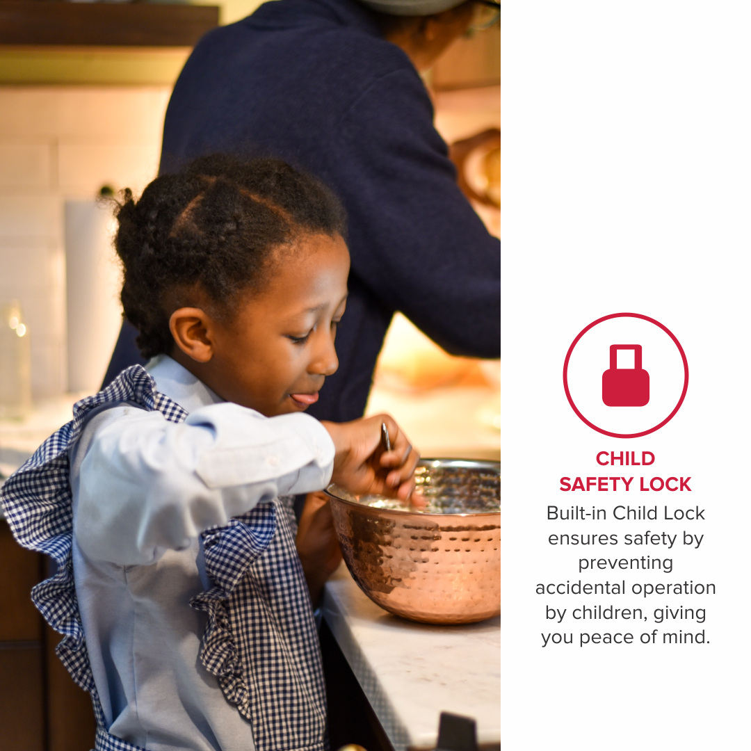 Our built-in Child Lock feature provides an extra layer of protection. It prevents accidental operation, giving you peace of mind while your little ones are around.