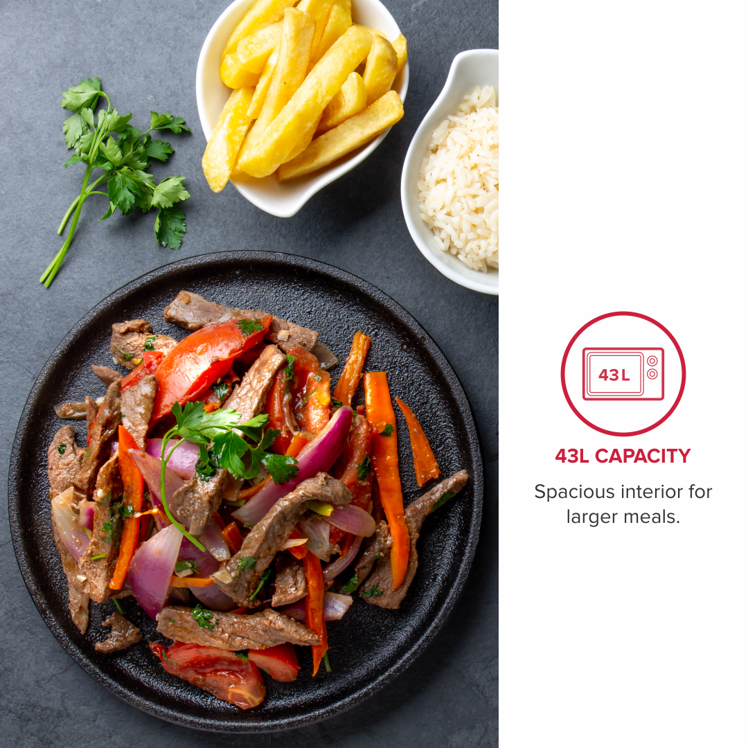 43L Capacity: Ideal for large families and bulk cooking.
