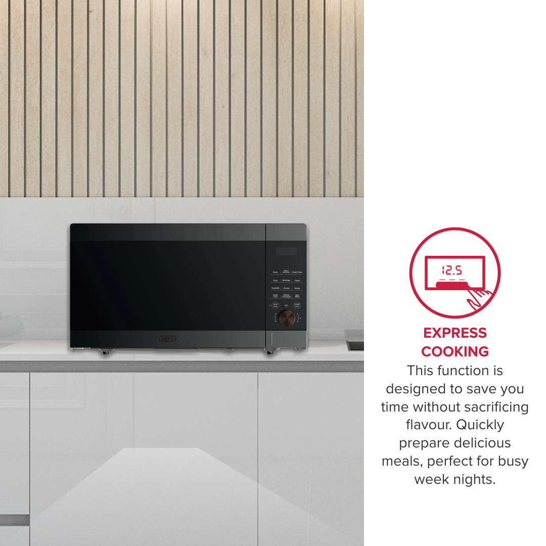 The Defy 43L Digital Solo Microwave (DMO143) is the perfect combination of power, style, and convenience. With its spacious 43L capacity, this microwave is designed to handle larger meals with ease, making it an excellent choice for busy households. Whether you're reheating, defrosting, or cooking, this appliance delivers fast and efficient performance every time.