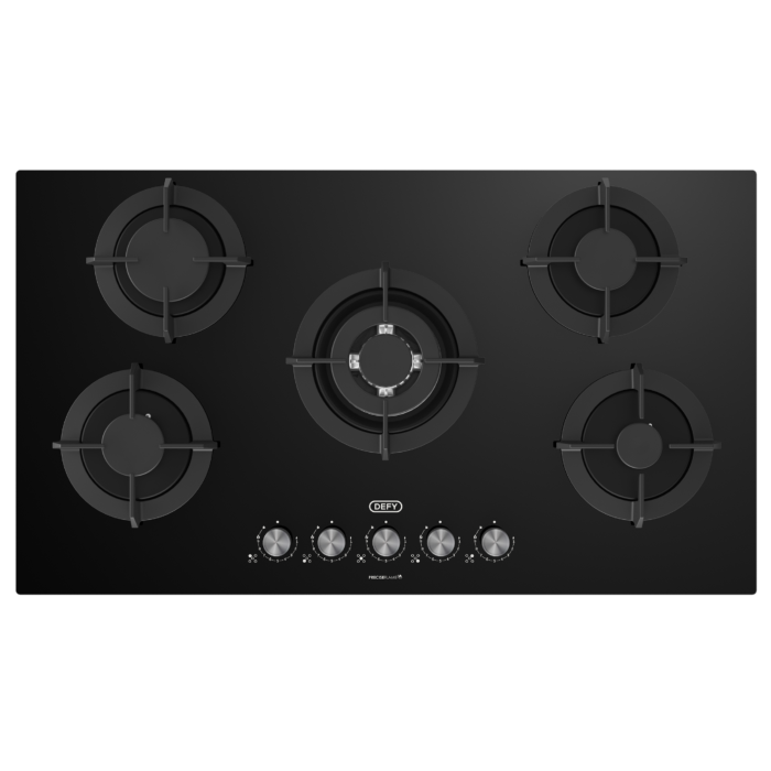 Elevate your cooking with the Defy 90cm Hybrid Hob DHG902, a sleek blend of gas and vitroceramic technology.