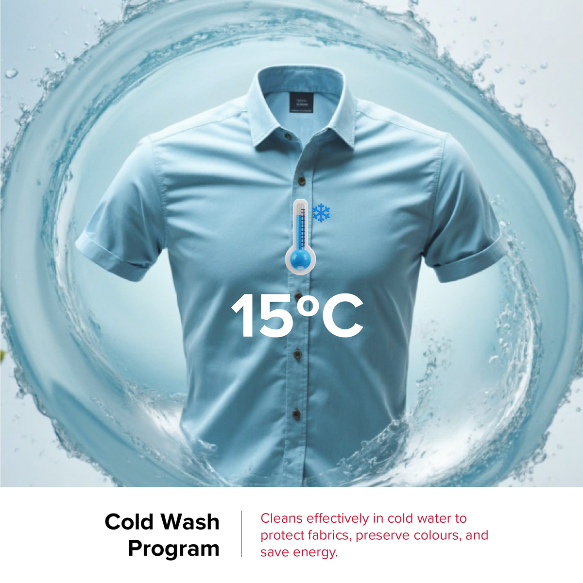 Cold Wash Option - Effective low-temperature cleaning to protect fabrics and a saving of up to 82% on energy consumption
