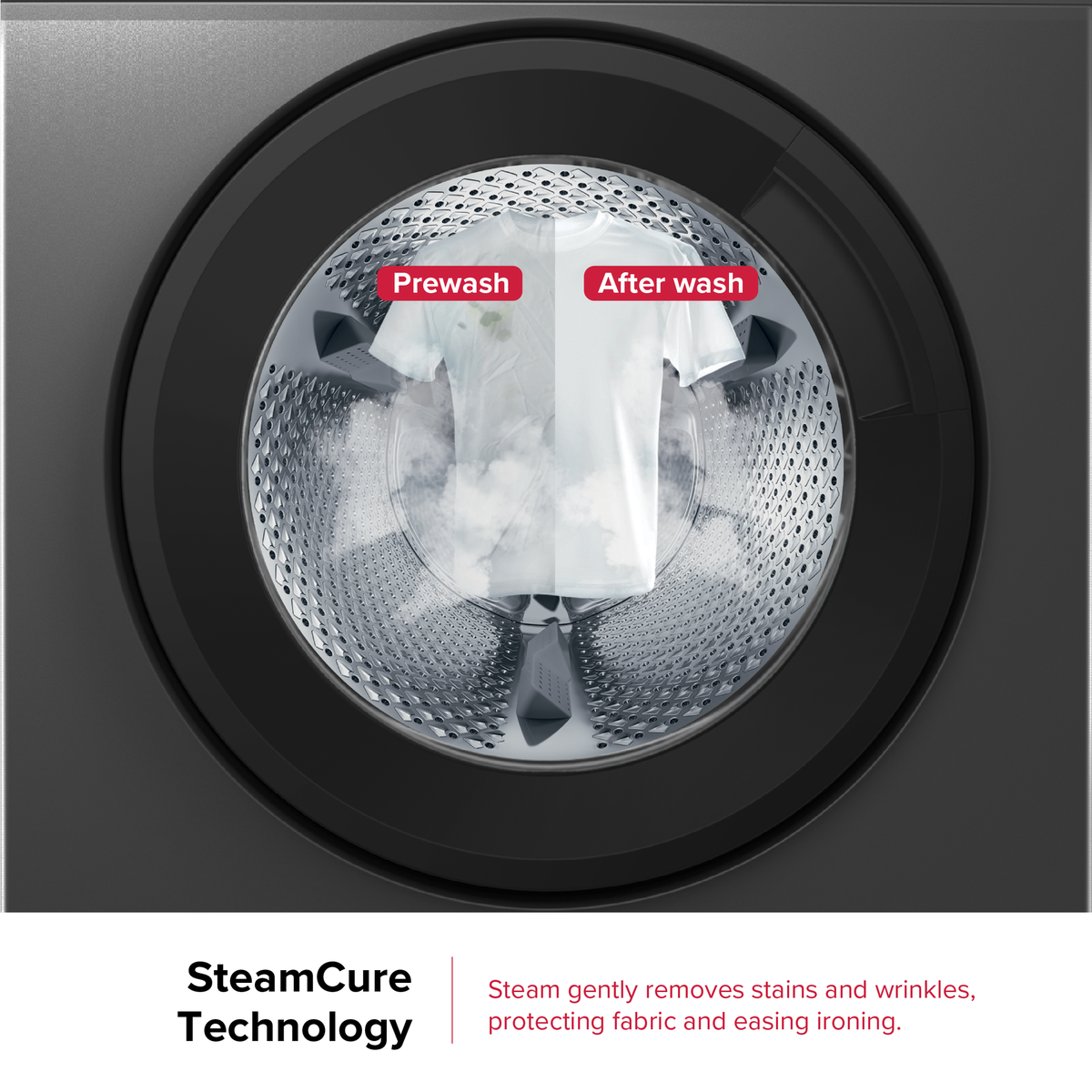 SteamCure Technology - Lifts stains and reduces wrinkles with the power of steam