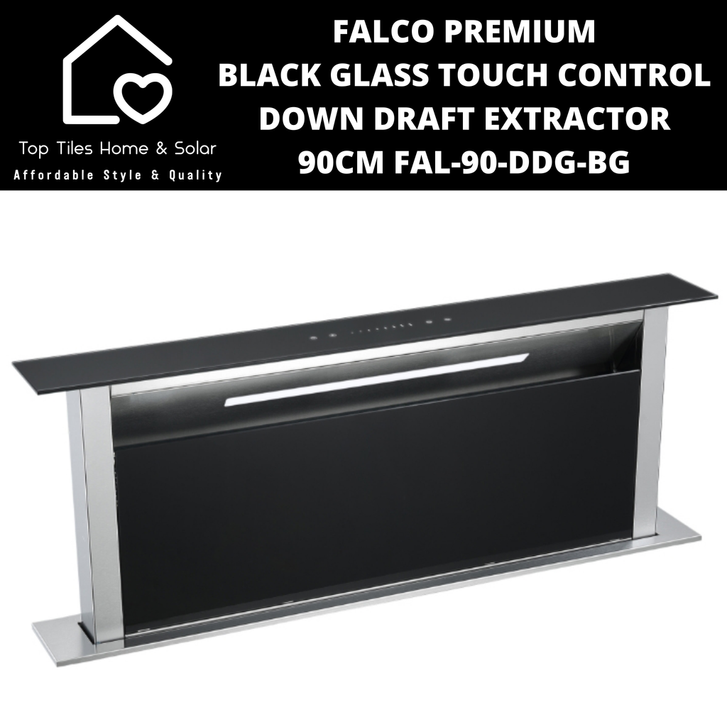 Falco Premium Black Glass Touch Control Down Draft Extractor - 90cm FAL-90-DDG-BG