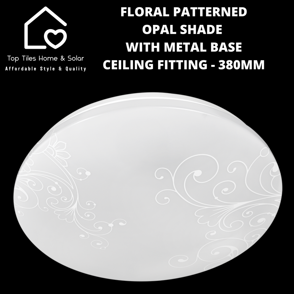 Floral Patterned Opal Shade With Metal Base Ceiling Fitting - 380mm