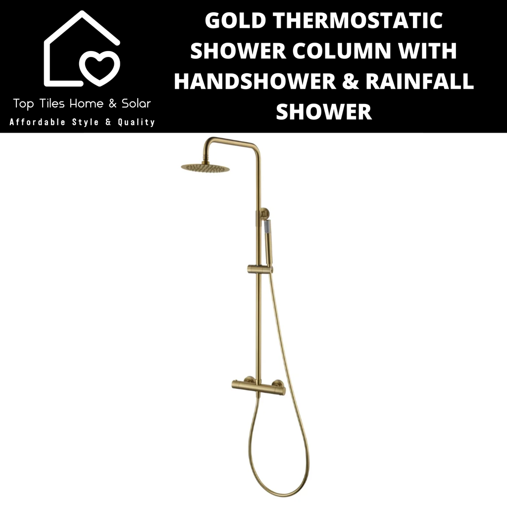 Gold Thermostatic Shower Column With Handshower & Rainfall Shower