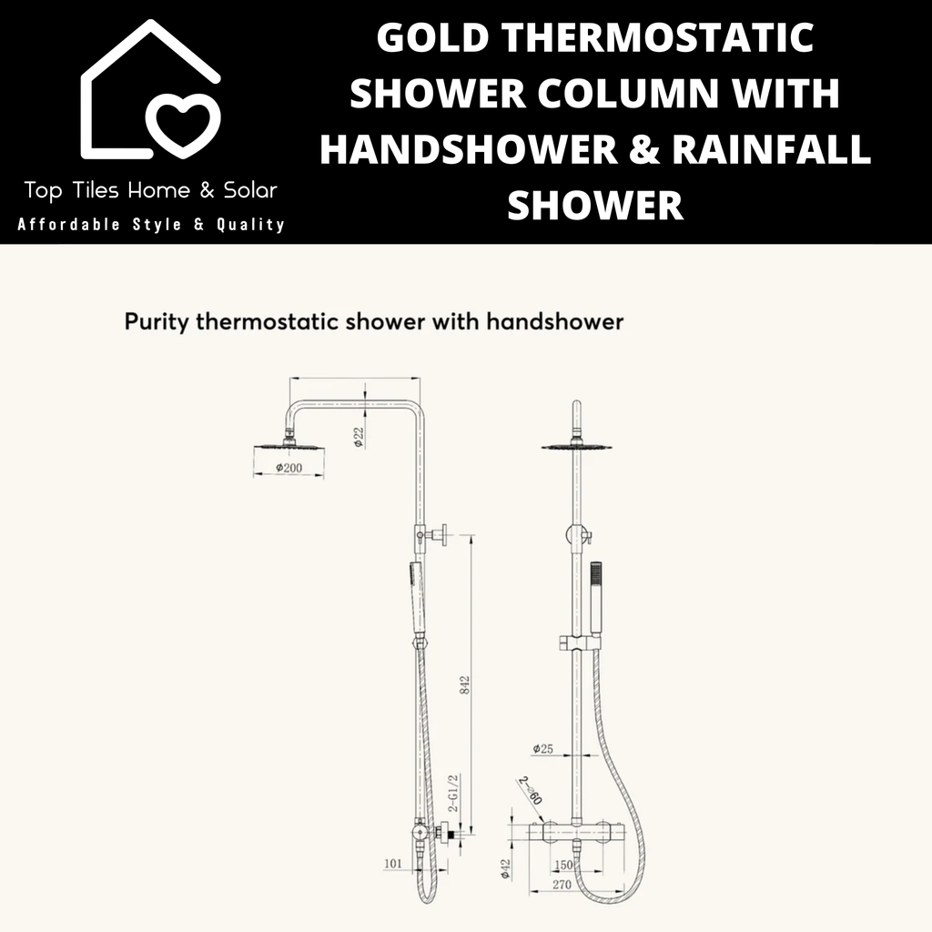 Designed for user comfort and convenience, the thermostatic valve prevents sudden temperature fluctuations, making it ideal for families with children or elderly users. The brushed gold finish not only adds a touch of luxury but is also resistant to tarnishing and corrosion, ensuring long-lasting performance. Overall, the Brushed Gold Thermostatic 2-Function Shower Column combines functionality, safety, and elegance, making it an excellent choice for upgrading your shower setup.