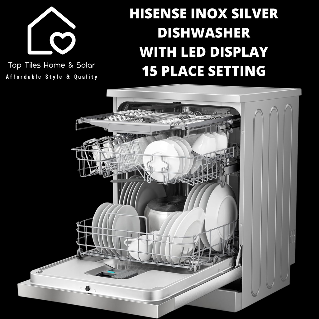 Hisense Inox Silver Dishwasher with LED Display - 15 Place Setting