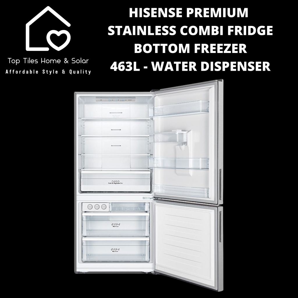Hisense Premium Stainless Combi Fridge Bottom Freezer - 463L Water Dispenser
