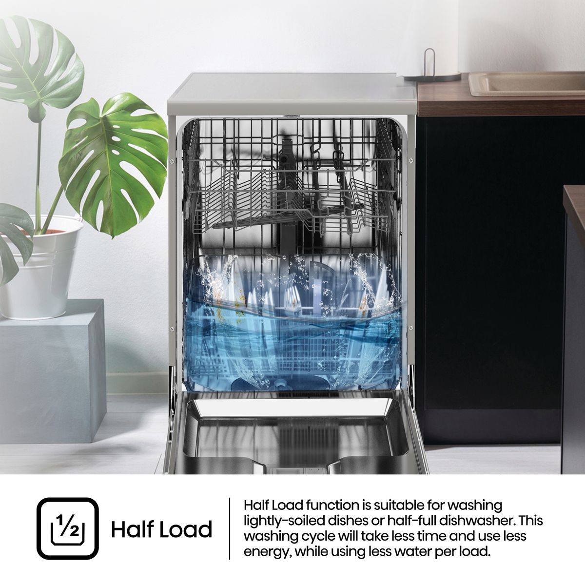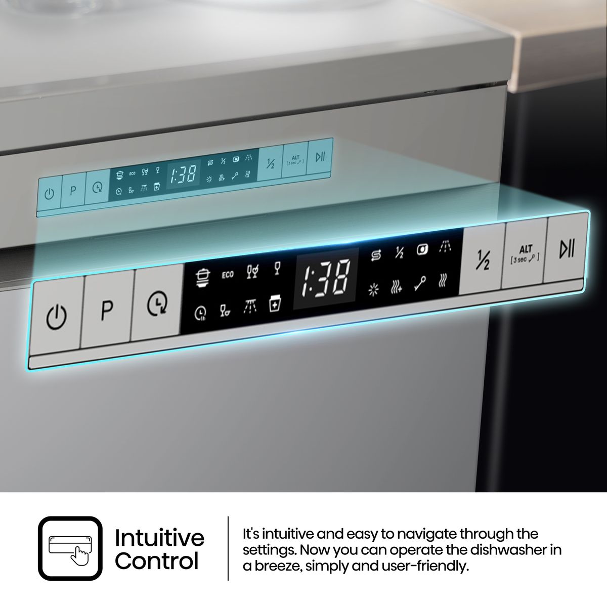 Push Button Functions: On/Off, Delay Start, Program, Half Load, Start/Pause, Child Lock