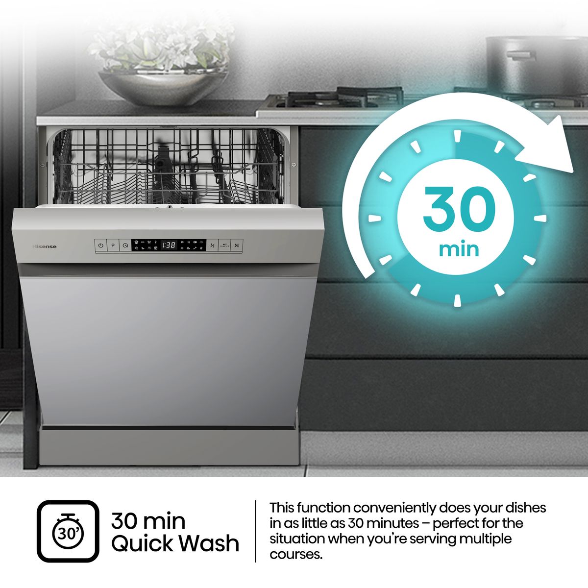 Hisense Silver Grey Dishwasher with LED Display - 13 Place Setting