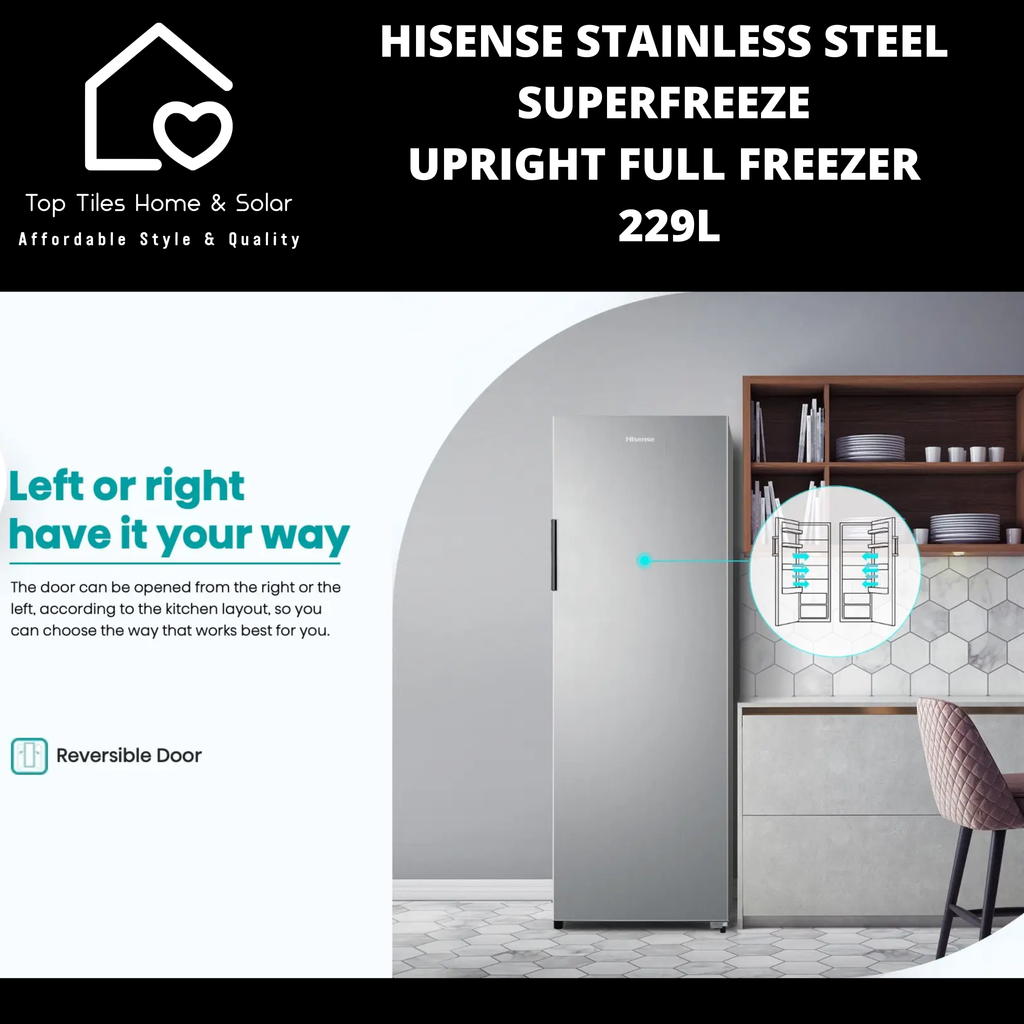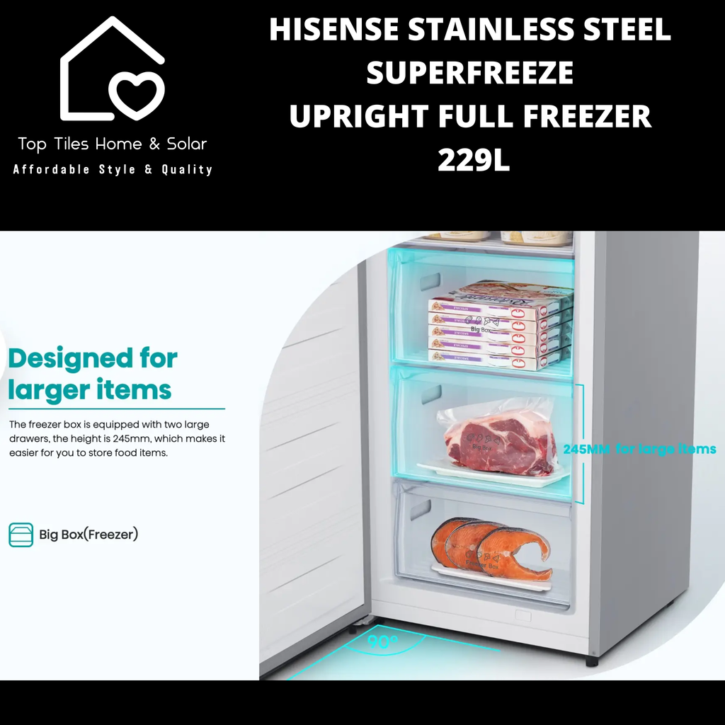 Hisense Stainless Steel SuperFreeze Upright Full Freezer - 229L