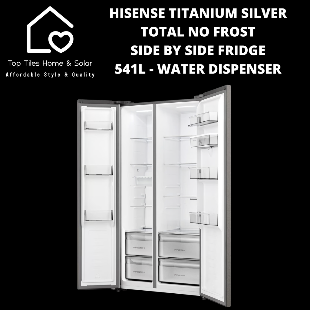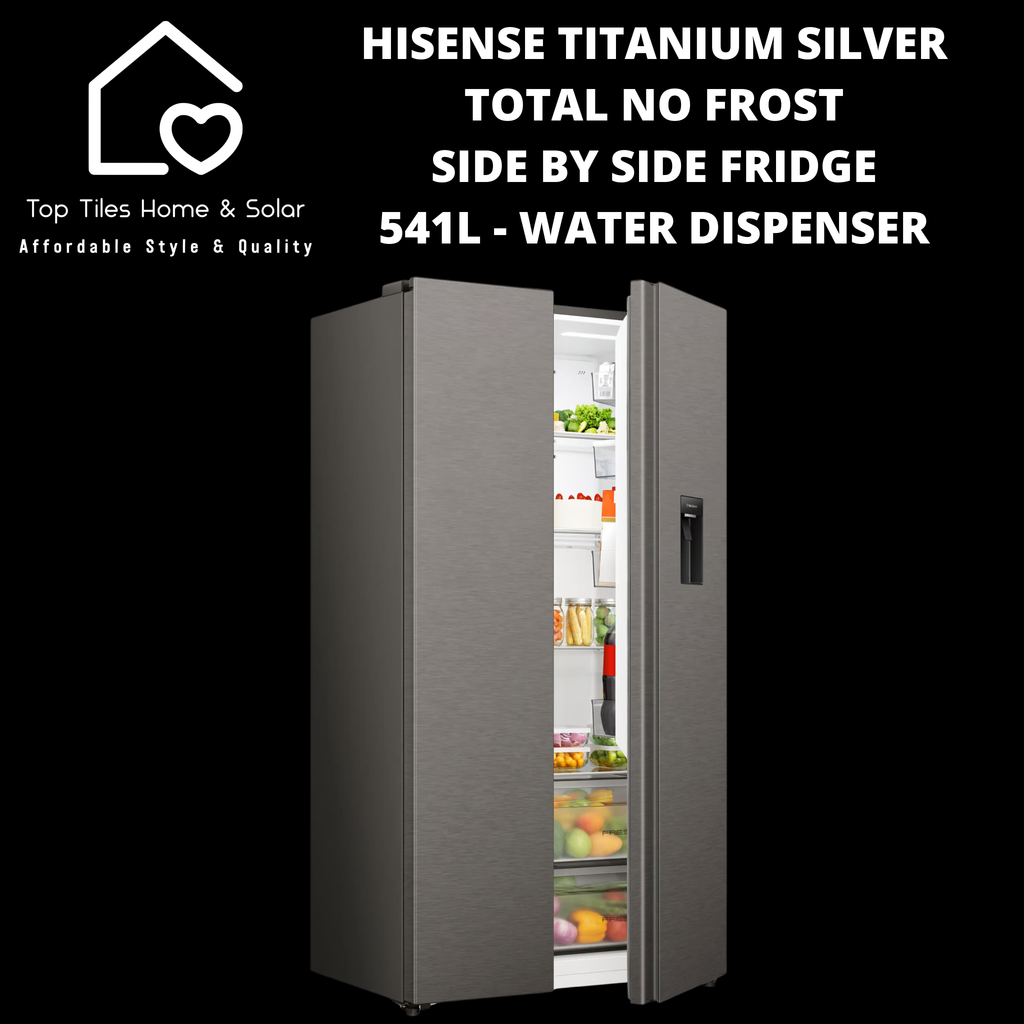 Hisense Titanium Silver Total No Frost Side by Side Fridge - 541L Water Dispenser