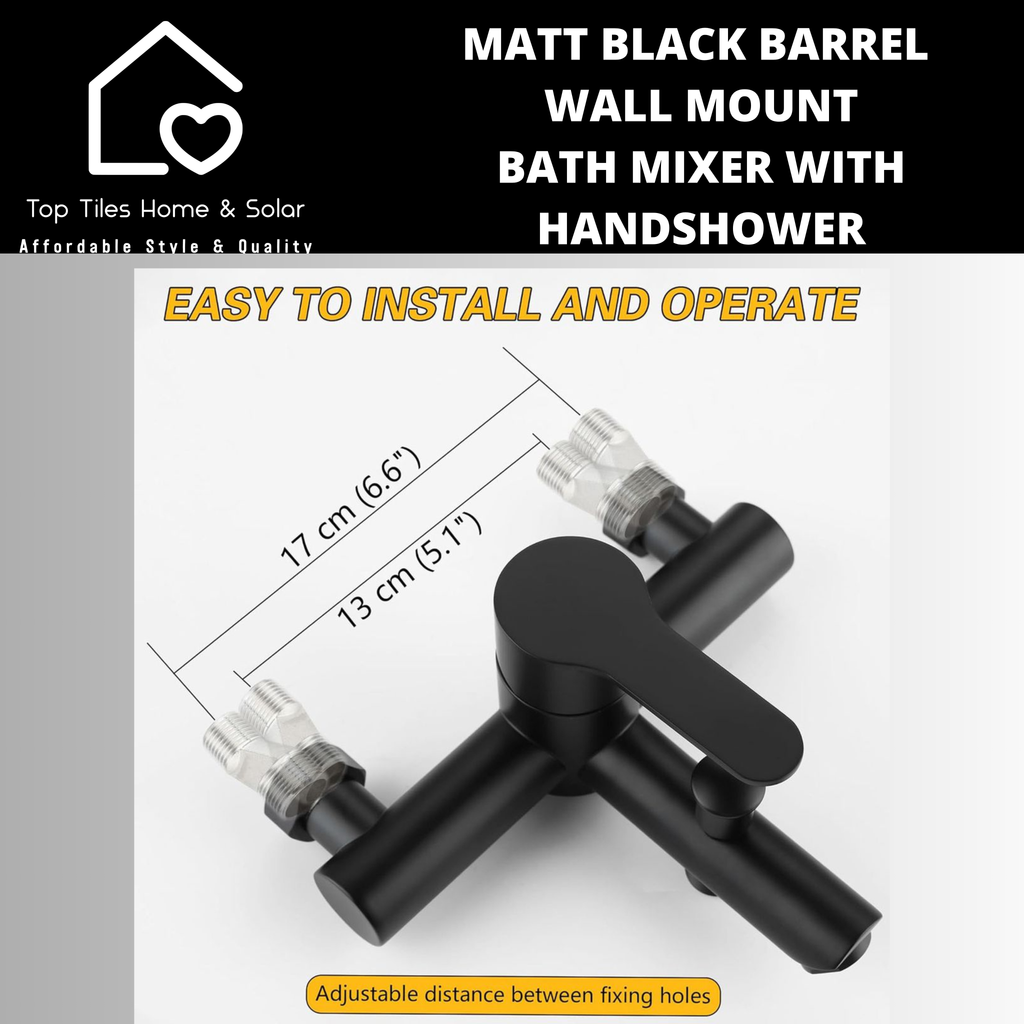 Matt Black Barrel Wall Mount Bath Mixer With Handshower