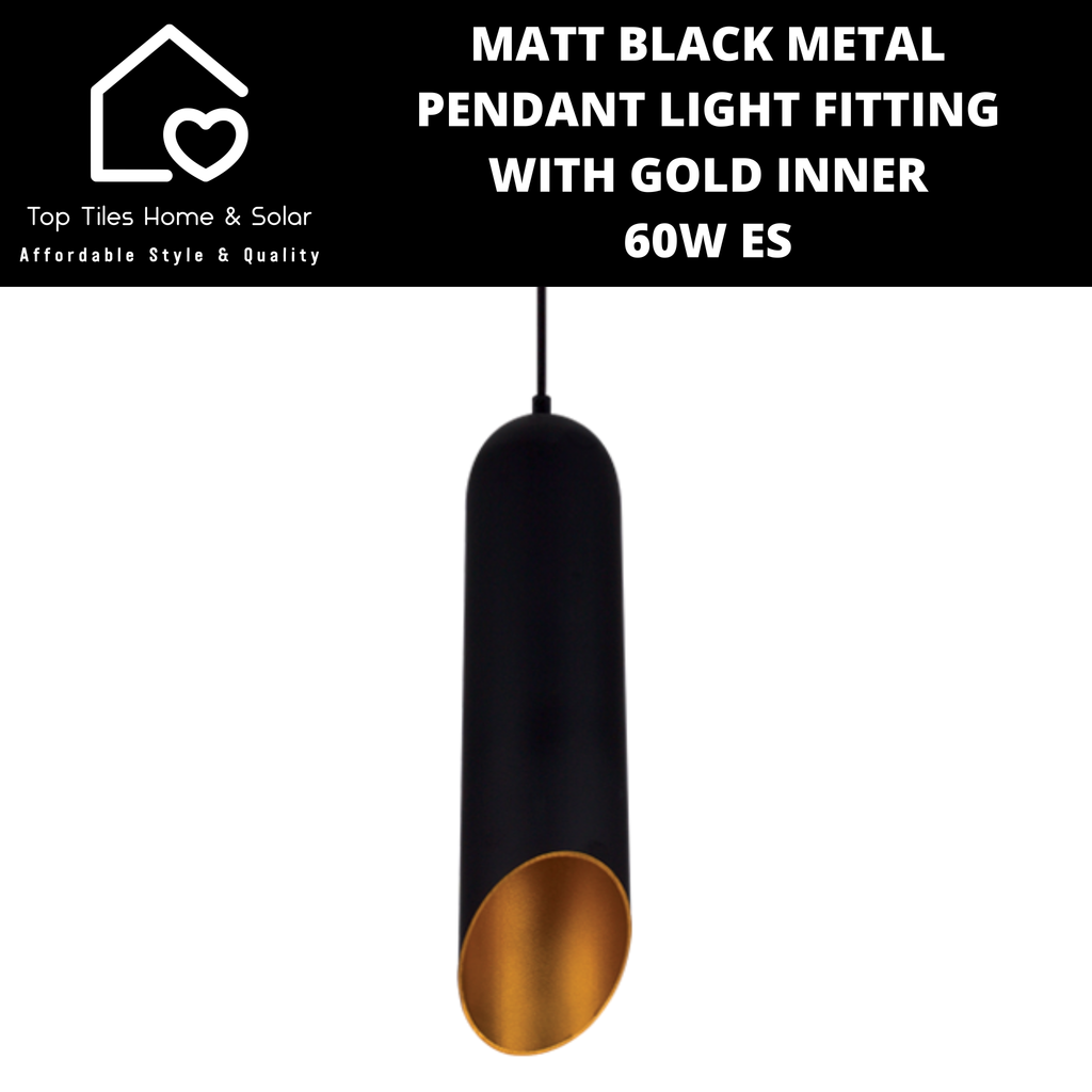 Matt Black Metal Pendant Light Fitting with Gold Inner - 60W ES
