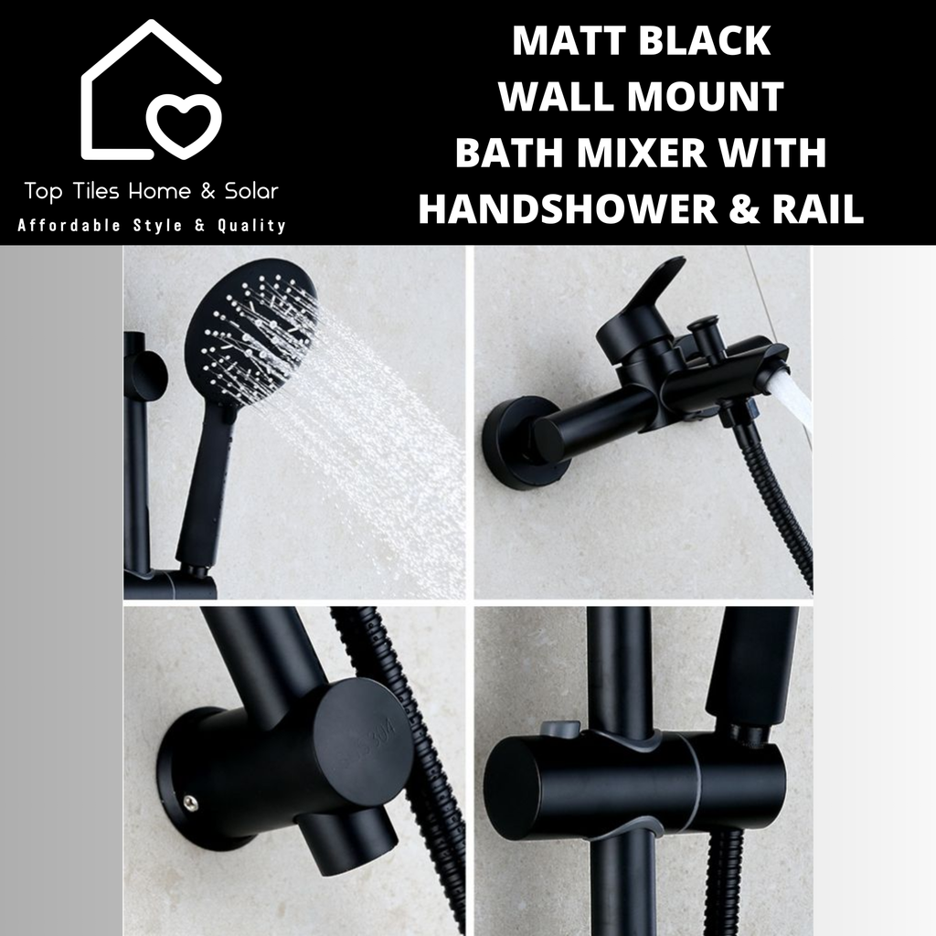 Matt Black Wall Mount Bath Mixer With Handshower & Rail