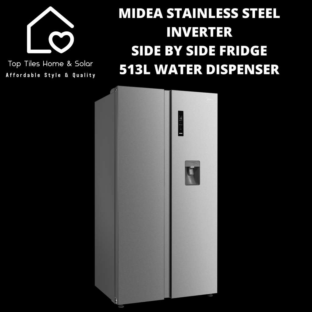 Midea Stainless Steel Inverter Side by Side Fridge - 513L Water Dispenser