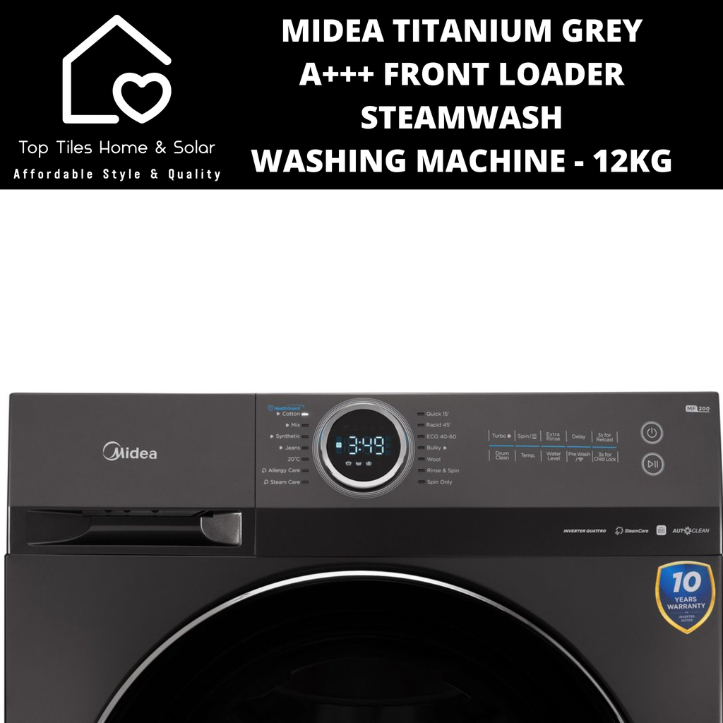 Midea Titanium Grey A+++ Front Loader SteamWash Washing Machine - 12kg