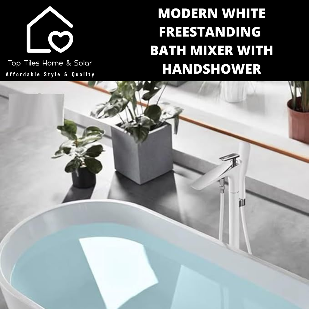 Elevate your bathroom with this Modern White Freestanding Bath Mixer with Handshower!