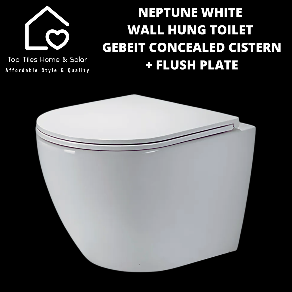 Neptune White Wall Hung Toilet With Geberit Concealed Cistern & Dual Flush Plate