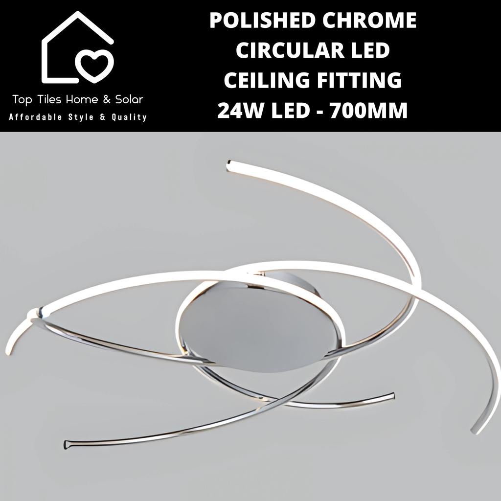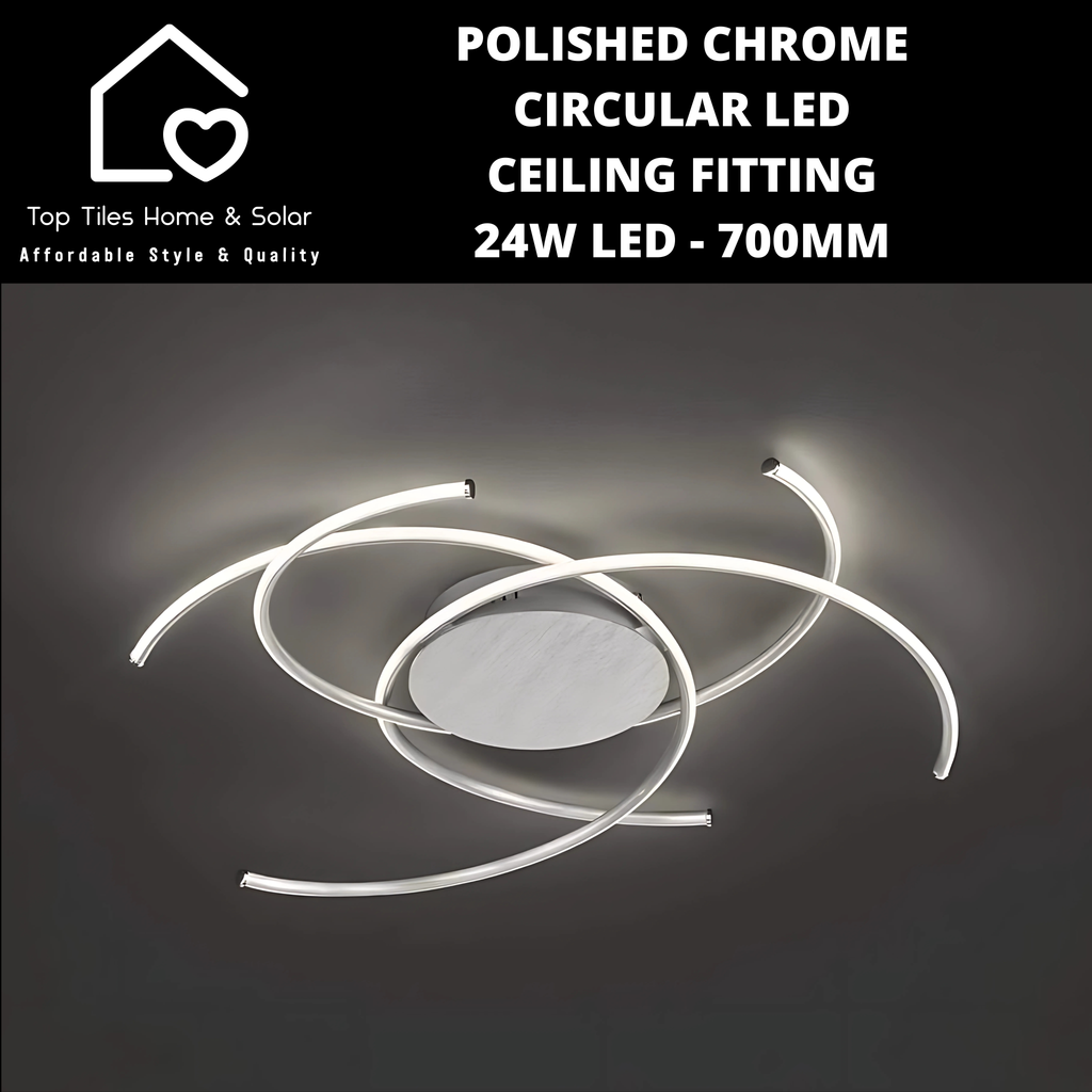 Polished Chrome Circular LED Ceiling Fitting - 24W LED - 700mm