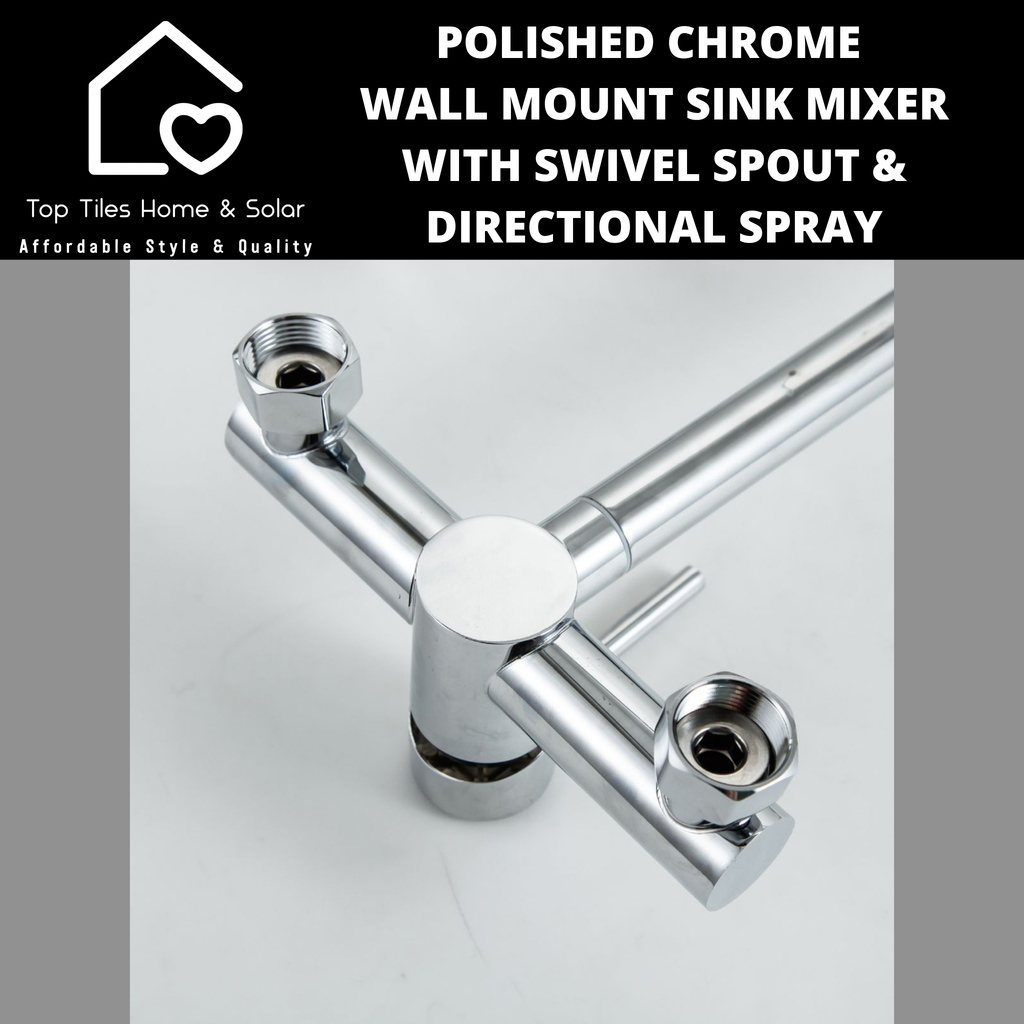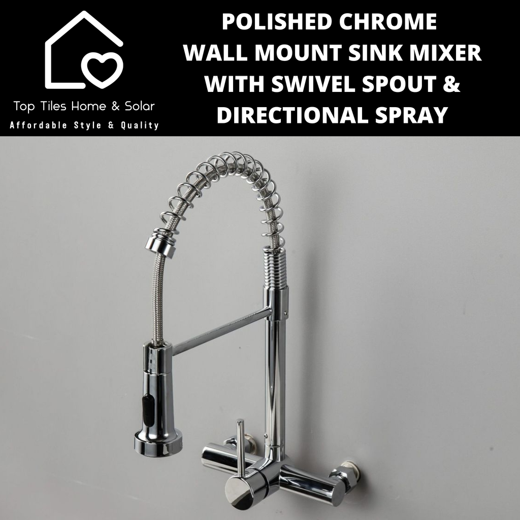 Polished Chrome Wall Mount Sink Mixer with Swivel Spout & Directional Spray