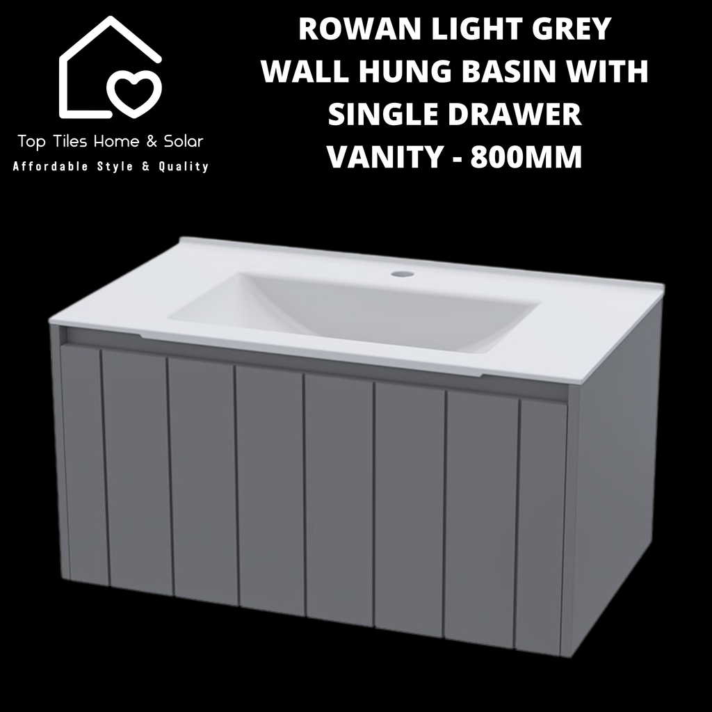 Rowan Light Grey Wall Hung Basin & Single Drawer Vanity - 800mm