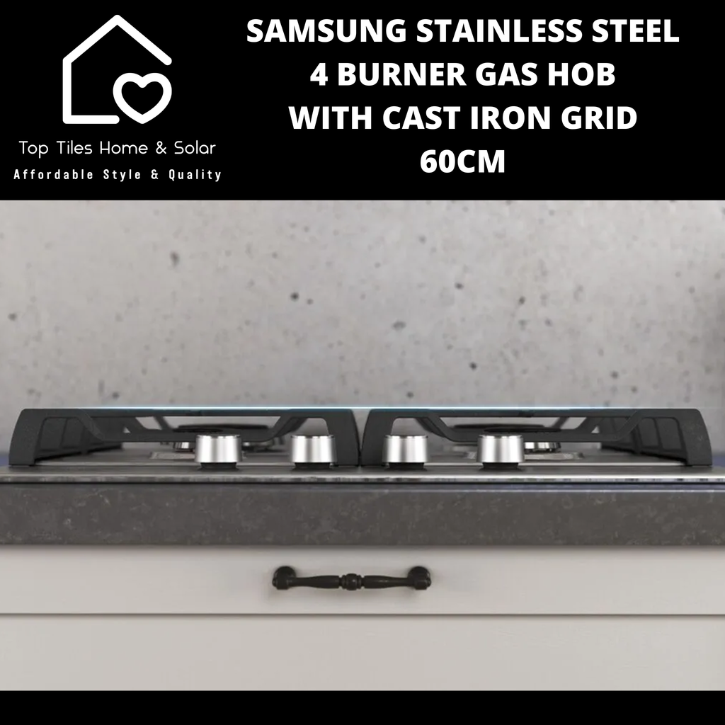 Samsung Stainless Steel 4 Burner Gas Hob with Cast Iron Grid - 60cm