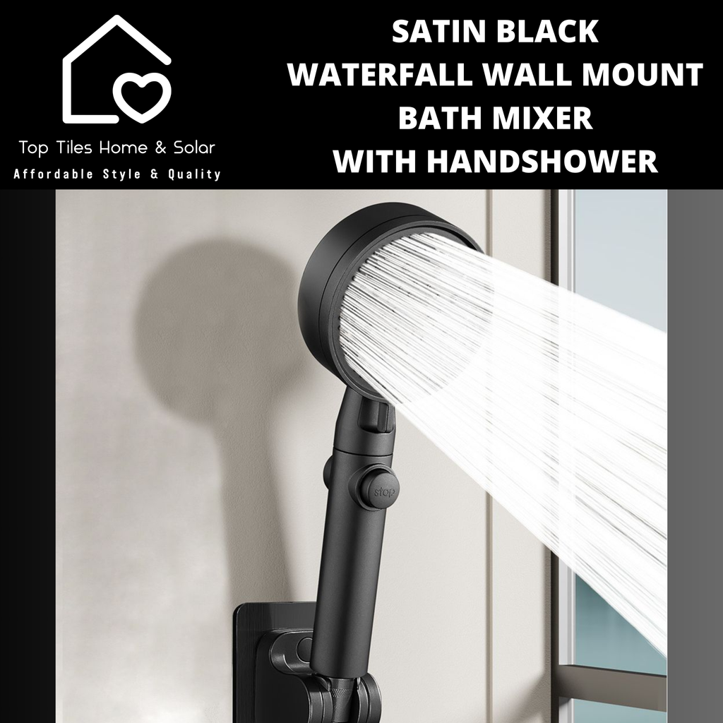 Satin Black Waterfall Wall Mount Bath Mixer With Handshower