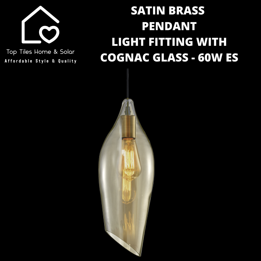 Satin Brass Pendant Light Fitting with Cognac Glass - 60W ES