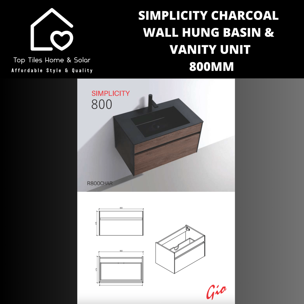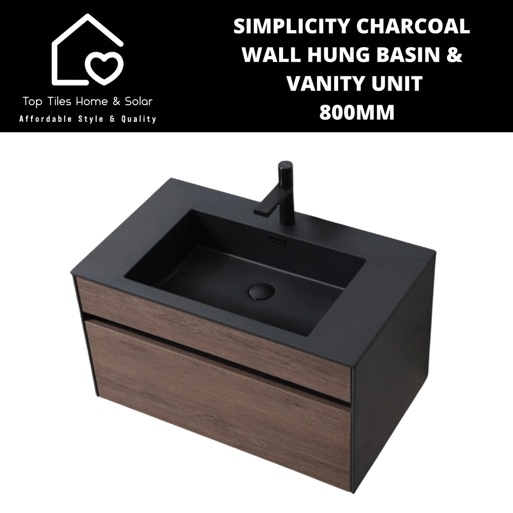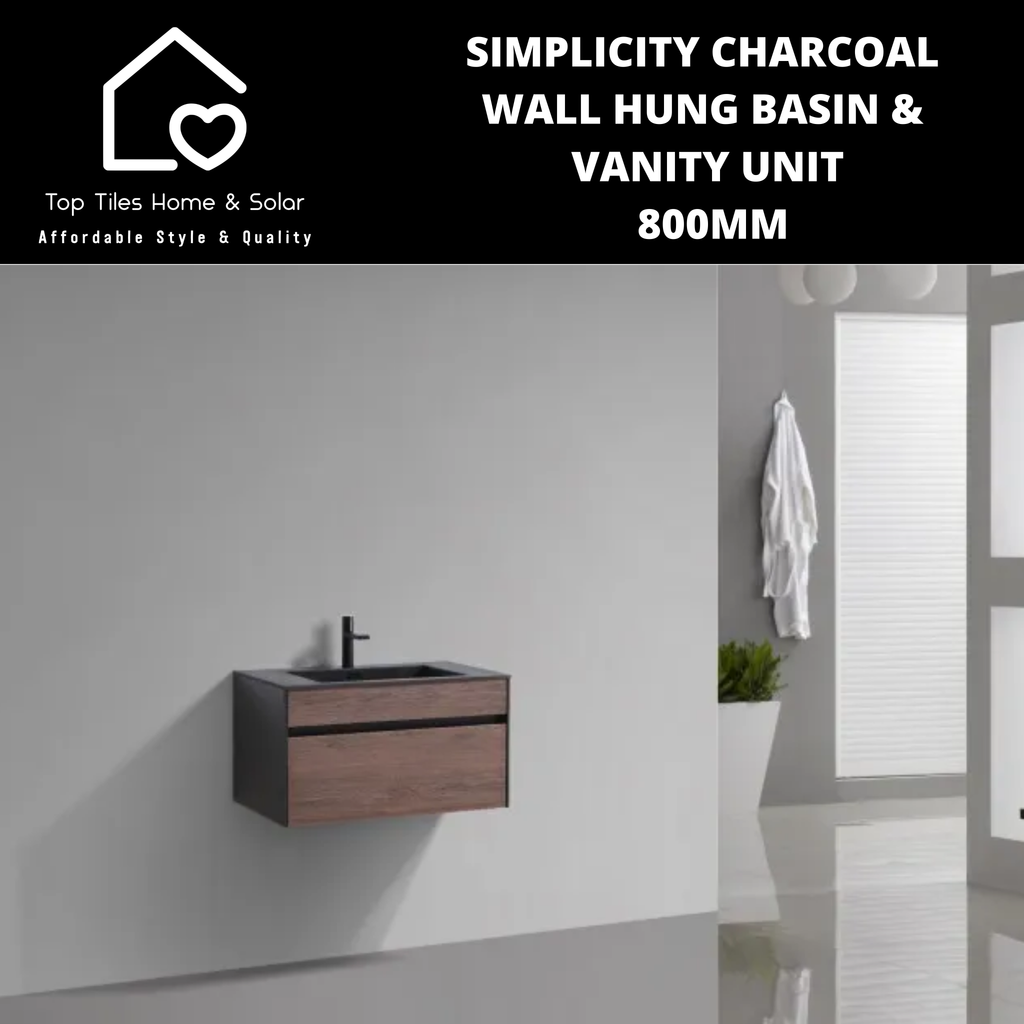Simplicity Charcoal Wall Hung Basin & Vanity Unit - 800mm