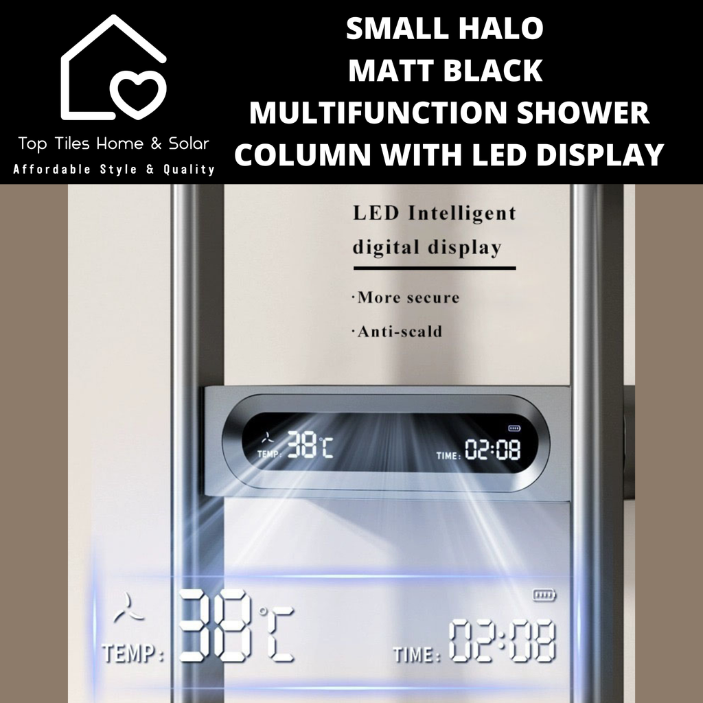 Small Halo Matt Black Multifunction Shower Column with LED Display
