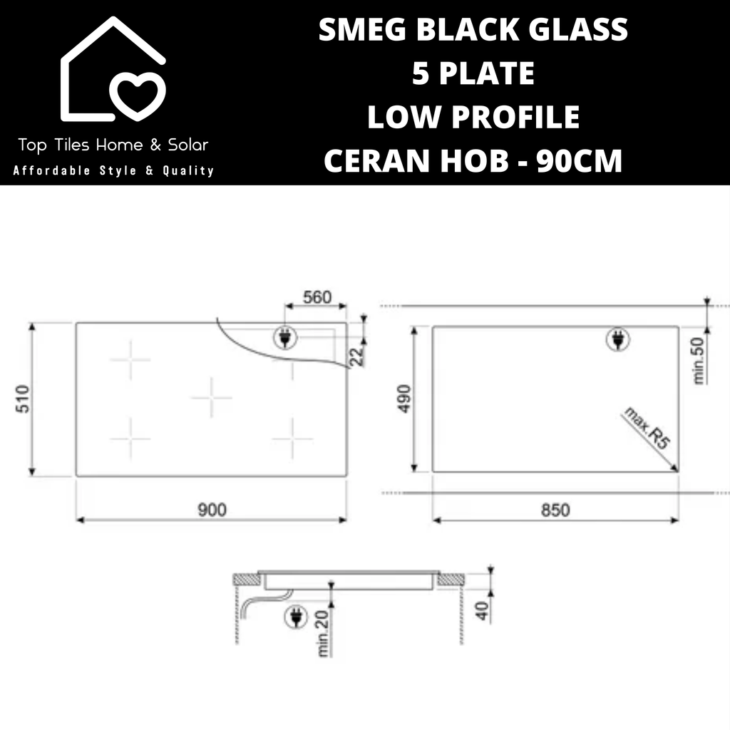 Smeg Black Glass 5 Plate Low Profile Ceran Hob - 90cm