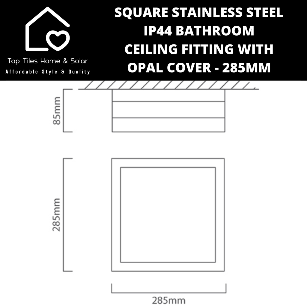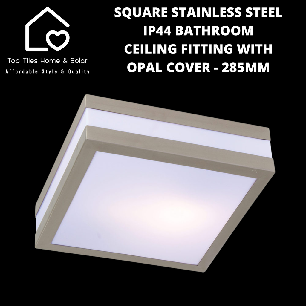Square Stainless Steel IP44 Bathroom Ceiling Fitting with Opal Cover - 285mm