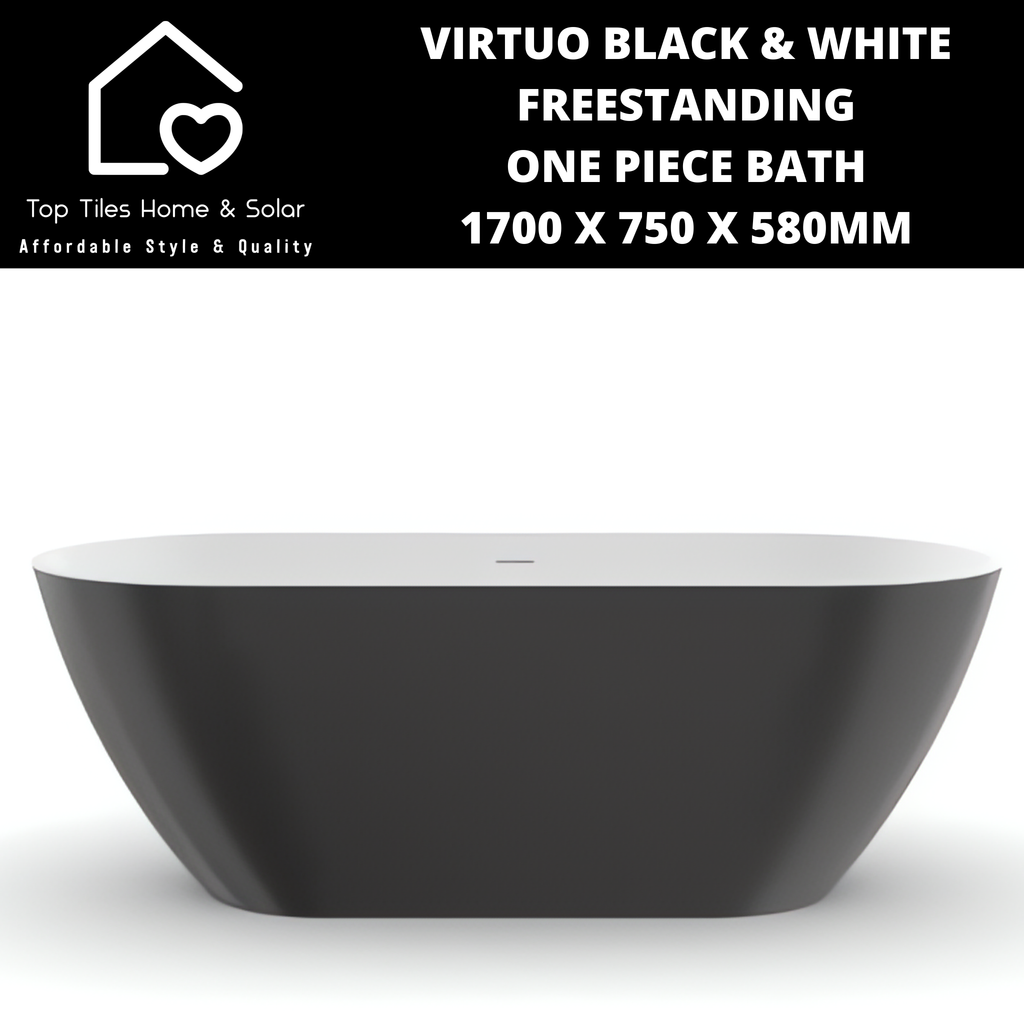 Virtuo Black & White Freestanding One Piece Bath - 1700 x 750 x 580mm