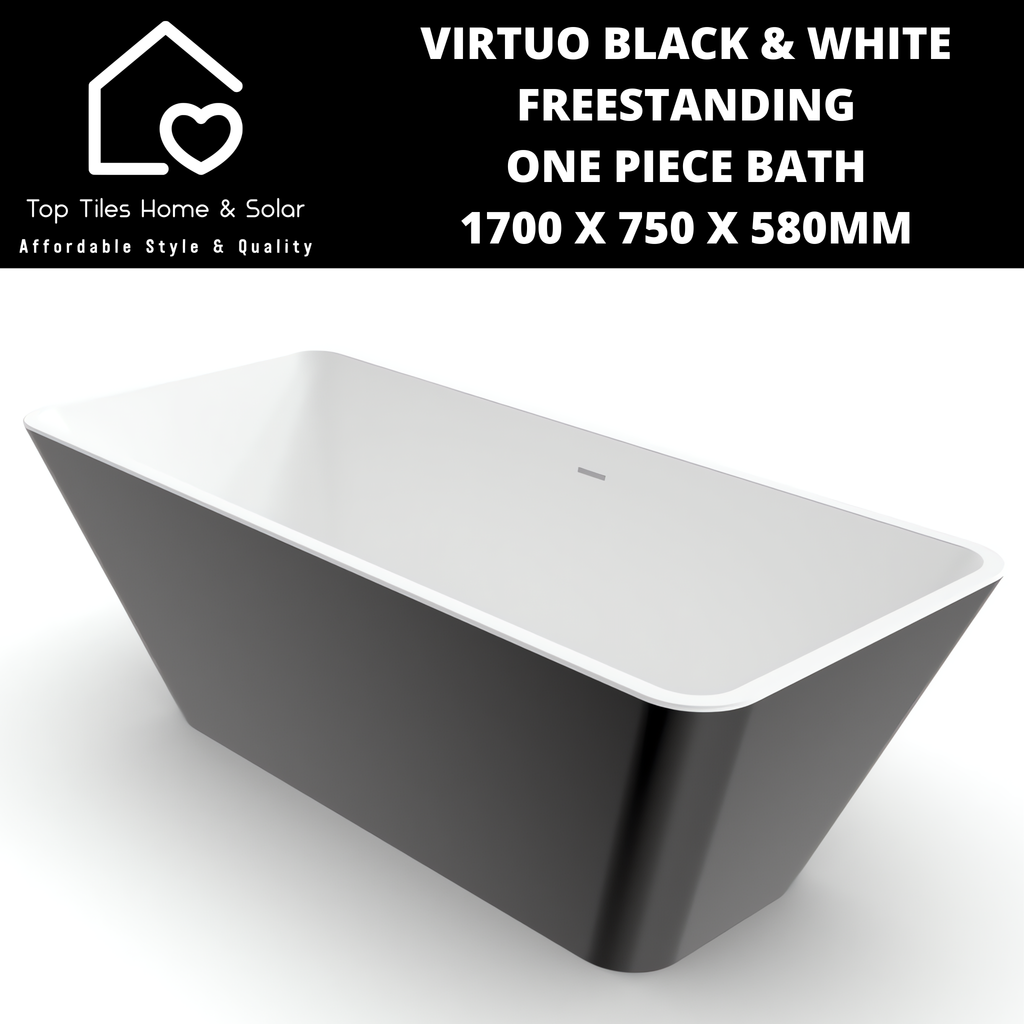 Virtuo Black & White Square Freestanding One Piece Bath - 1700 x 750 x 580mm