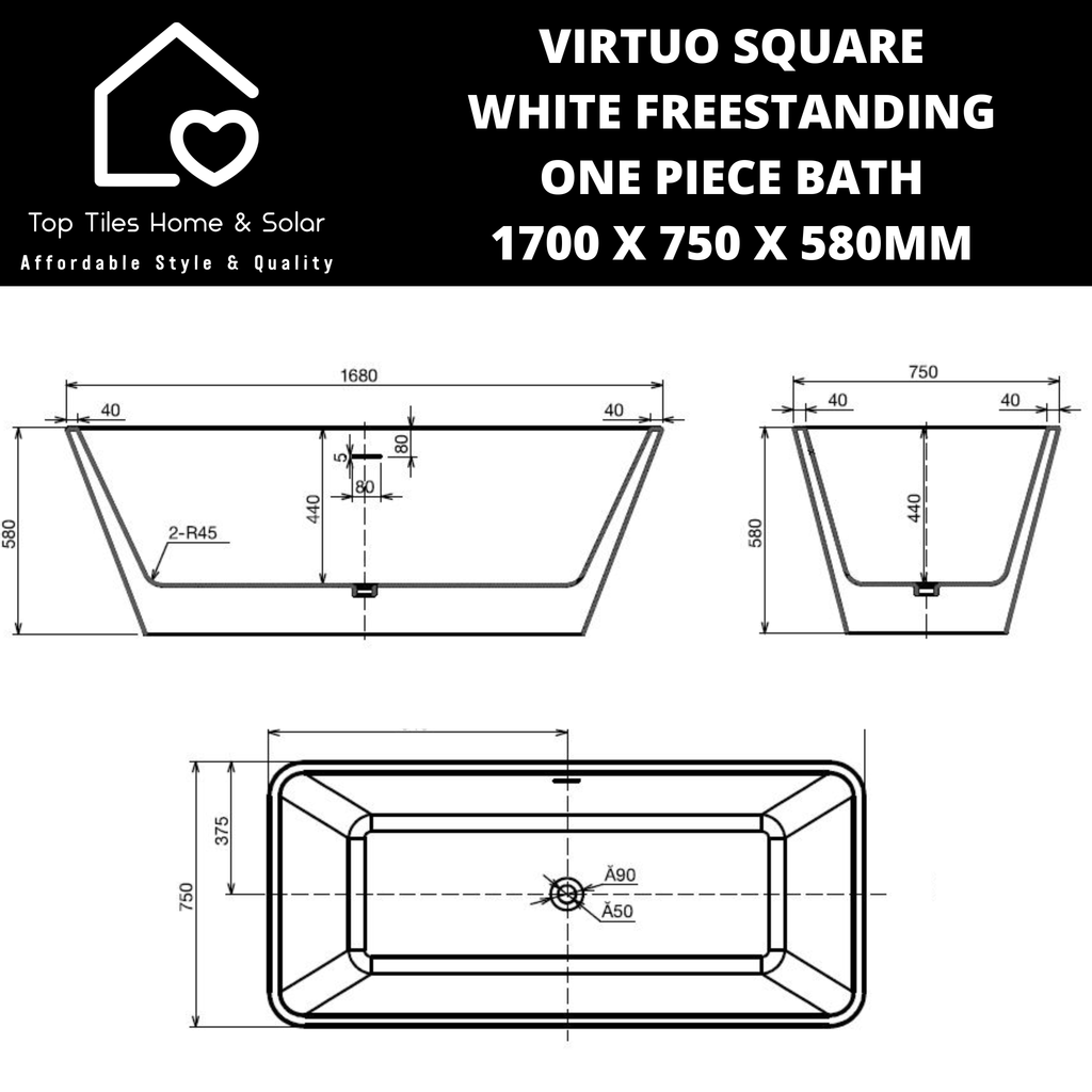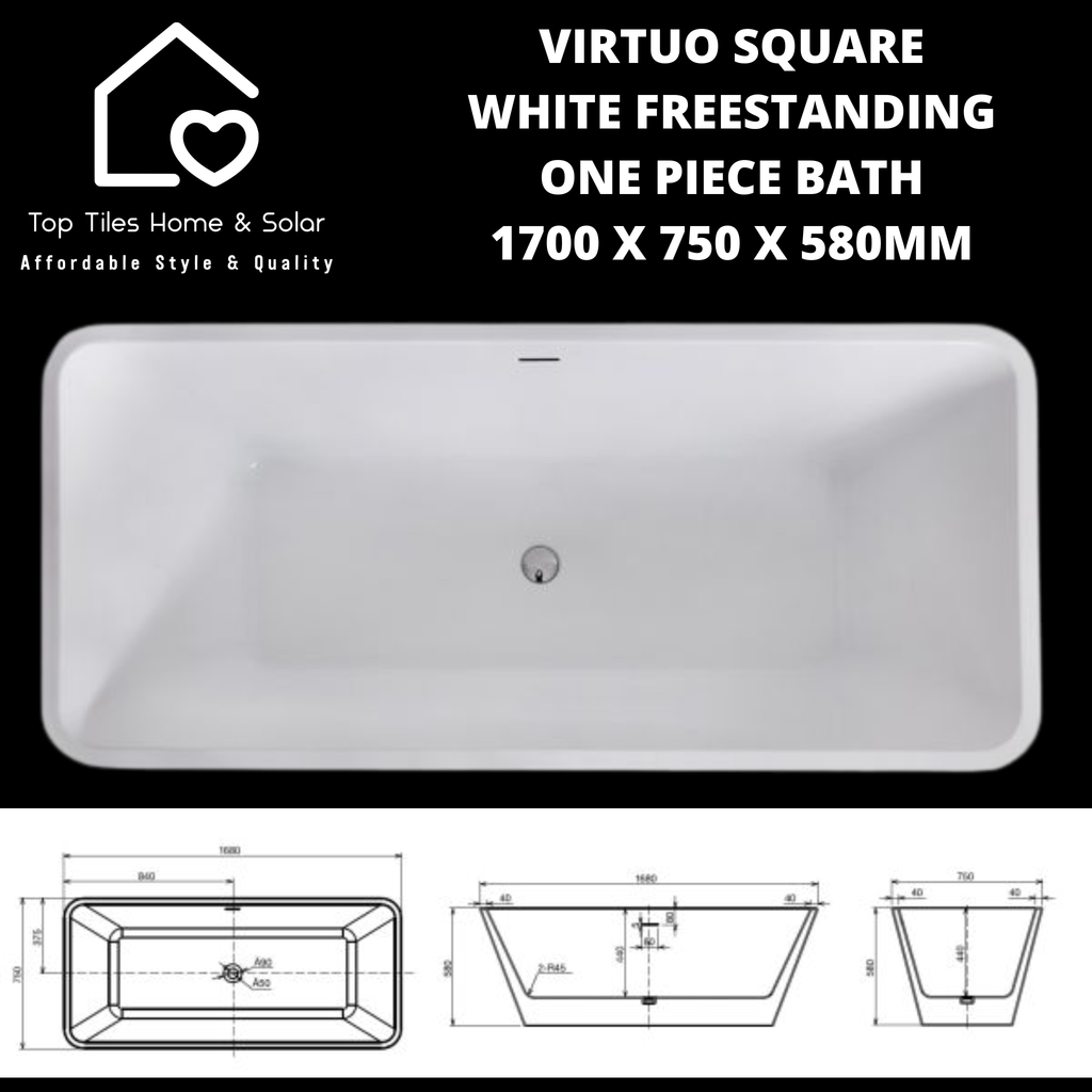 Virtuo White Square Freestanding One Piece Bath - 1700 x 750 x 580mm